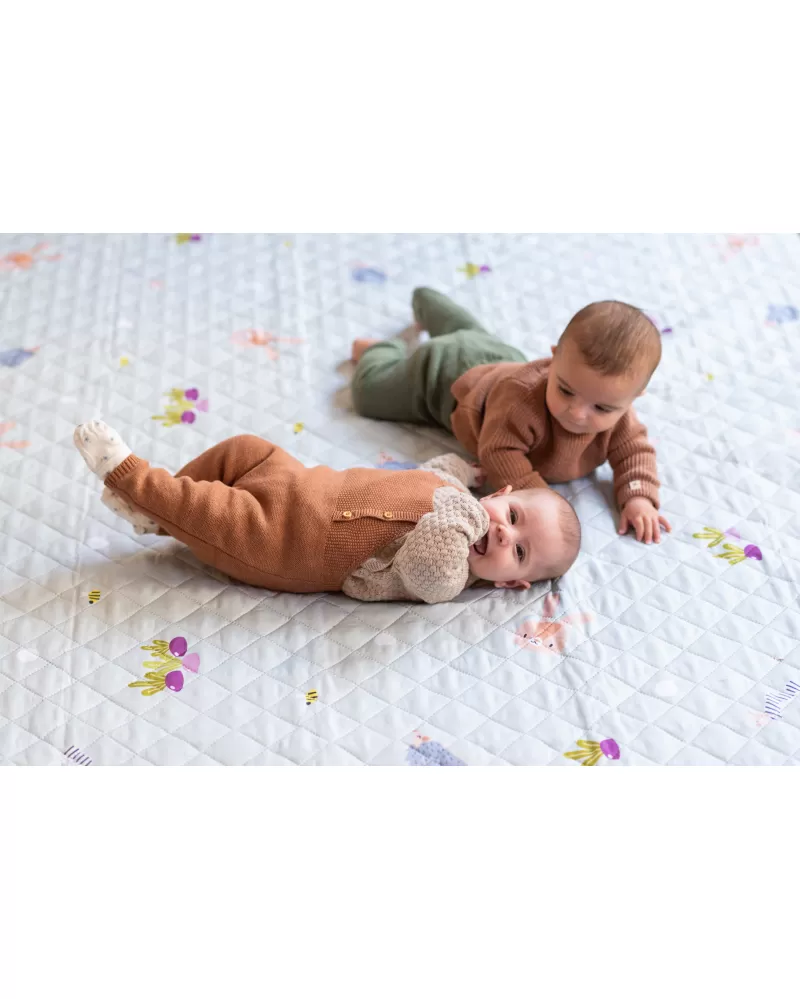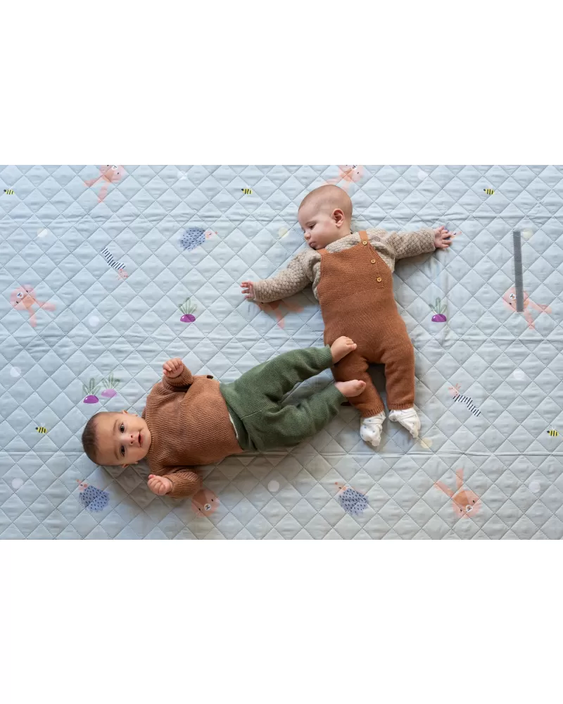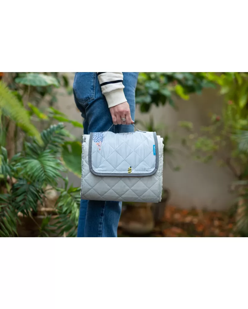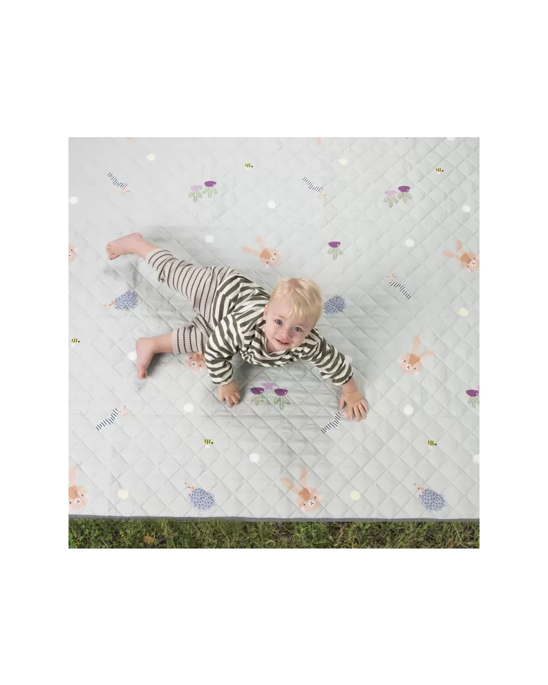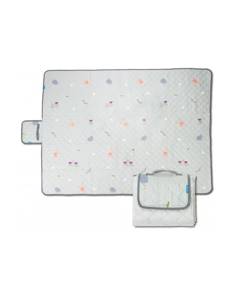 Měkká, extra velká hrací deka s voděodolnou spodní stranou je ideální pro použití venku. Deka nabízí dostatek prostoru pro rodinný piknik i pro hraní rodičů s dítětem. Pro přenášení se deka snadno složí do tvaru tašky s držadlem.
