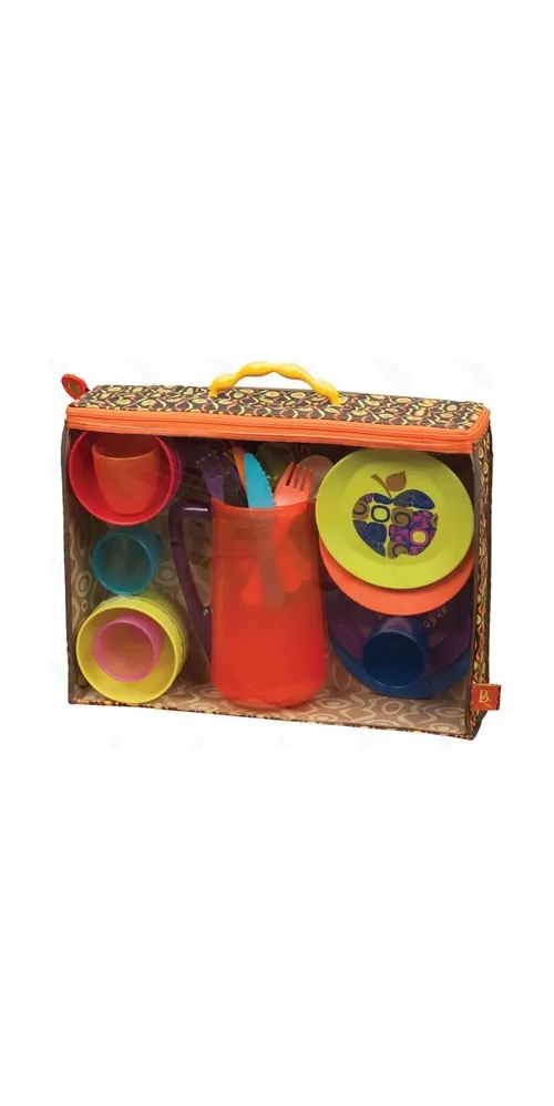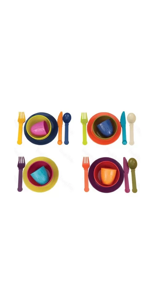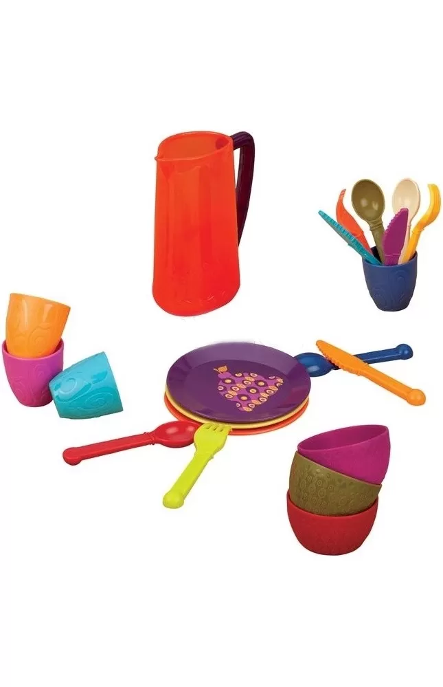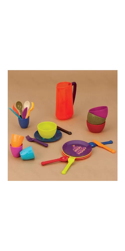 Barevná sada nádobí Btoys v krásném designu pro dětskou hru na snídani, oběd nebo večeři.