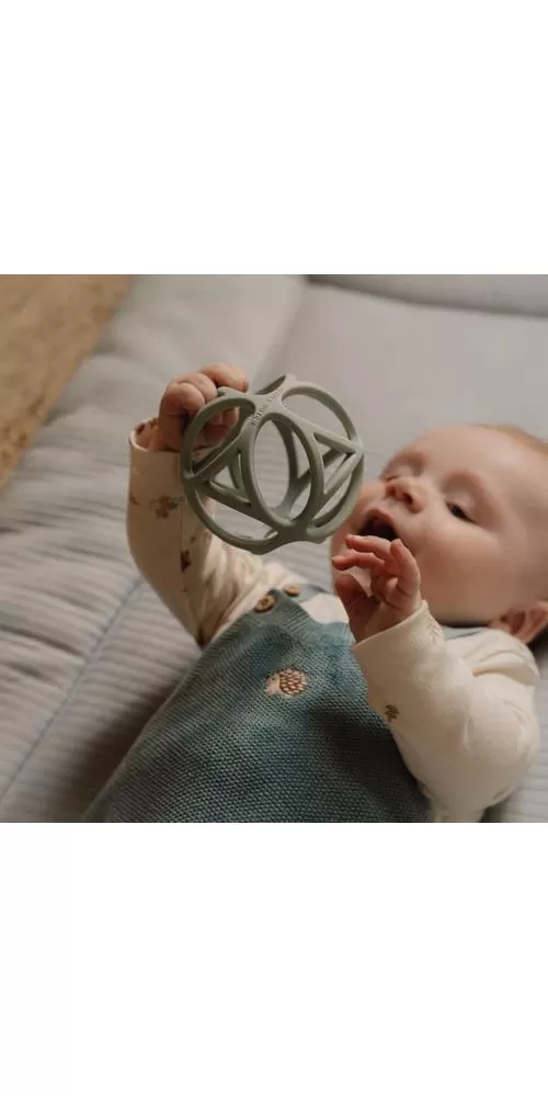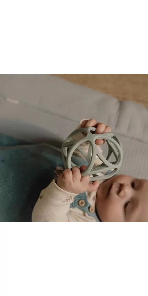 Lehounký míček z jemného silikonu má tvar pro snadné uchopení dětskými ručičkami. Míček láká dítě ke zkoumání rukama i ústy, slouží tak i jako kousátko, což oceníte při prořezávání prvních zoubků vašeho dítěte.