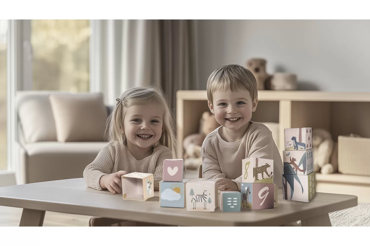Díky jednoduchému, ale chytrému designu jsou kostky vhodné pro děti již od 2 let. Dítě si může samo nebo s rodičem stavět věže, rozpoznávat zvířátka, učit se barvy a čísla nebo si vymýšlet vlastní hry. Kostky slouží jak k učení, tak k zábavě – a přesně to je kombinace, kterou moderní rodiče hledají.