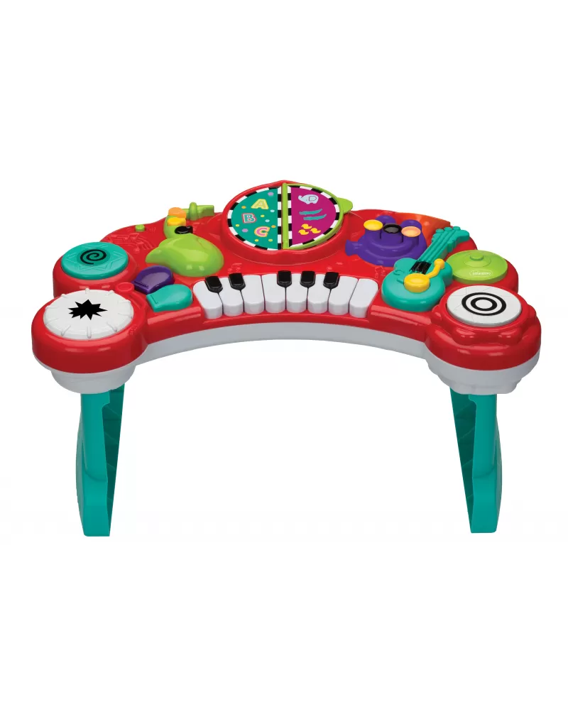 Hudební pult Infantino 10v1 dětem přibližuje hudbu už od raného věku. Pult nabízí 10 různých hudebních nástrojů včetně kláves s velkými tlačítky pro snadné hraní malými dětskými prstíky. Součástí je také oboustranný „zpěvník“, který po otočení automaticky přehrává různé veselé skladby a rozšiřuje možnosti hraní. Pult přehrává více než 25 melodií a zvukových efektů.
