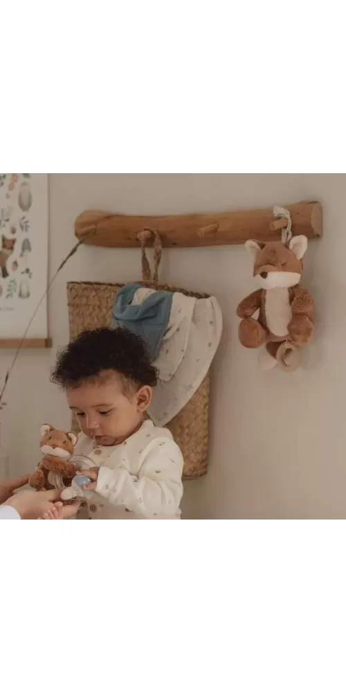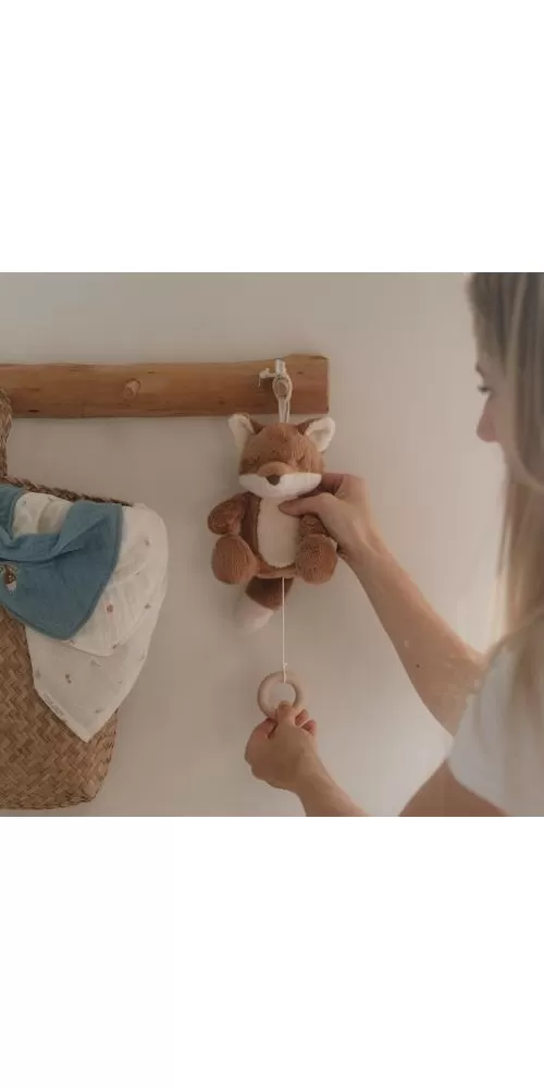 Závěsná hračka v podobě roztomilé lišky v sobě skrývá natahovací hudební box s příjemnou ukolébavkou, která vaše miminko uklidní a pomůže mu usnout. Hračku snadno připevníte k postýlce či komodě.
