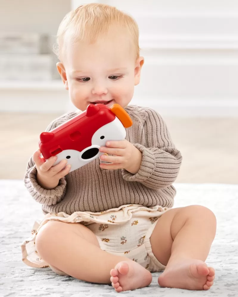 Jedna, dva, tři... řekněte "sýr!" Náš přátelský liščí fotoaparát je vybaven zábavným "filmem", realistickými zvuky závěrky, světly blesku, dětským zrcátkem a dalšími úžasnými funkcemi, které si malí fotografové zamilují! Stačí zmáčknout liščí ucho, aby se začalo fotografovat!