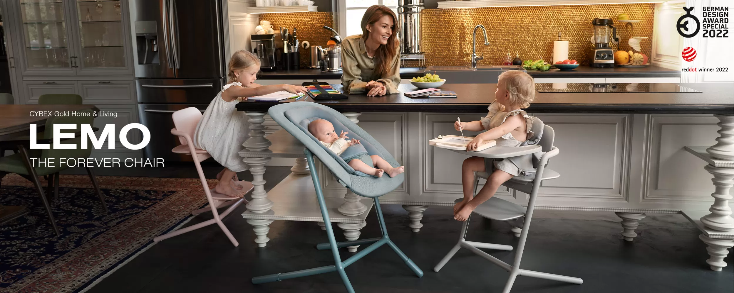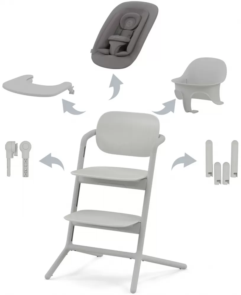 Sezení u stolu od prvního dne: Díky sadě Lemo 4v1 se váš maličký potomek může připojit k rodinné zábavě u kuchyňského stolu od svého narození a setrvat tak až do 99 let. Po narození miminka začněte s lehátkem Bouncer. Jakmile bude vaše dítě schopno sedět, Baby Set poskytuje potřebnou podporu. A jak bude starší, čekají na vás a vaši rodinu další možnosti.