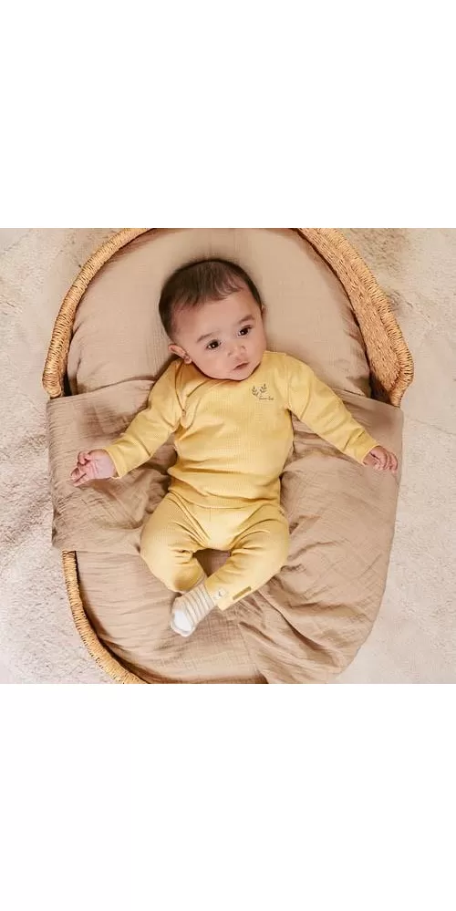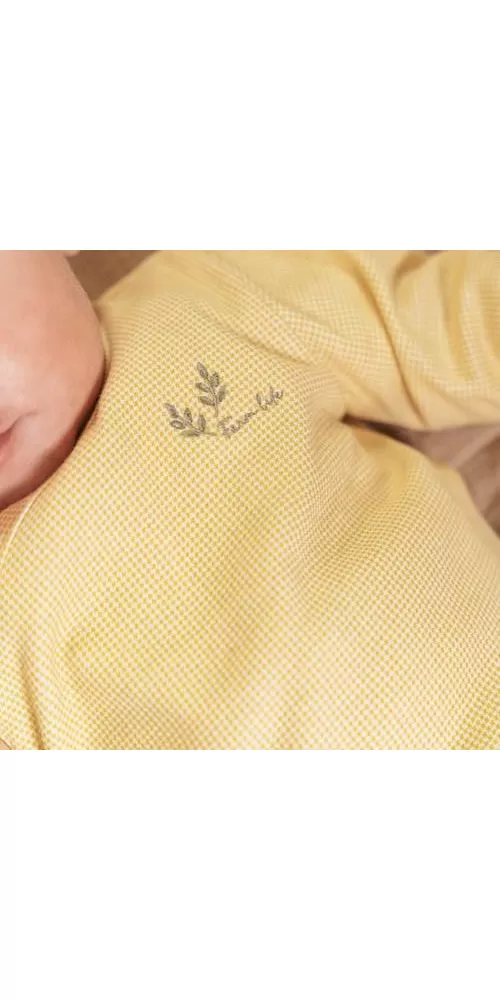 Triko z měkké organické bavlny s jemným vzorem a krásnou výšivkou má zapínání na knoflíky na přední straně pro snadné oblékání dítěte.