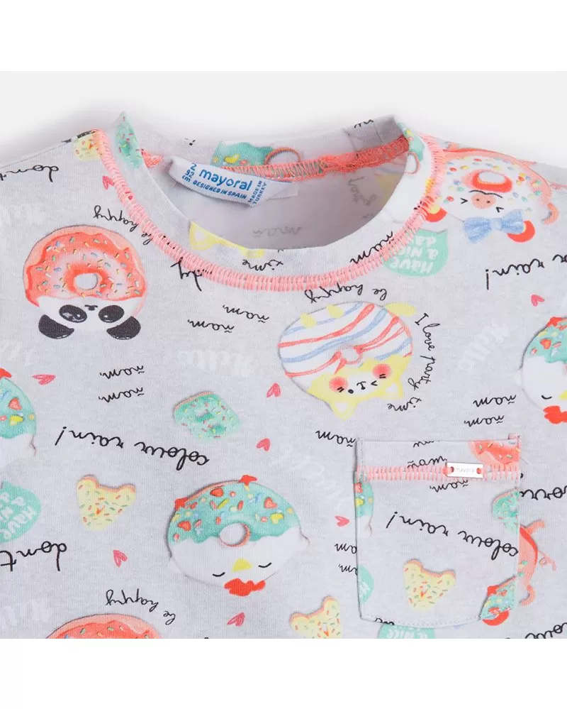 Letní tričko s krátkým rukávem s barevnými donaty pro holčičky od kvalitní španělské značky MAYORAL.