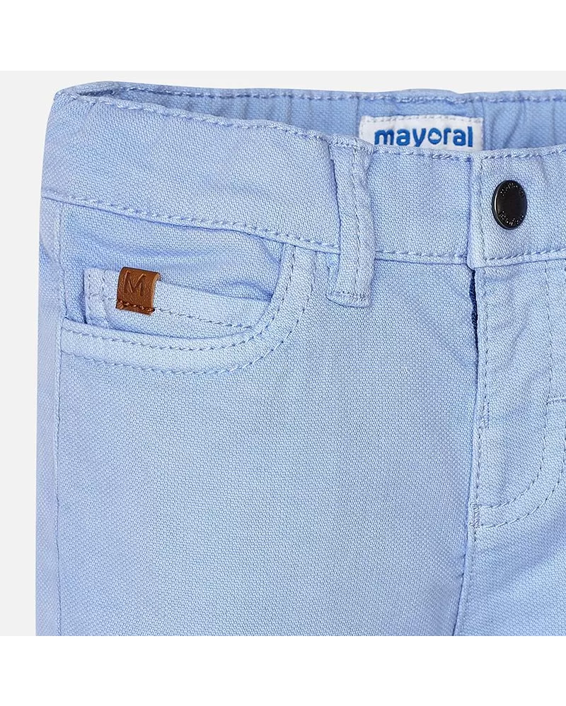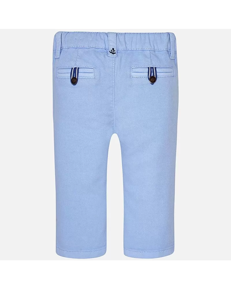 Krásné dlouhé modré kalhoty pro chlapečka od kvalitní španělské značky MAYORAL. Elegantní kalhoty s nastavitelným pasem, kapsami a zadními kapsami na knoflíky.