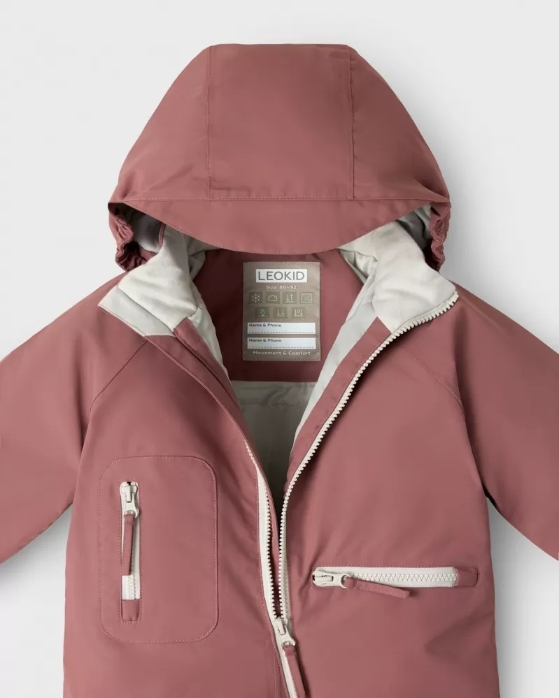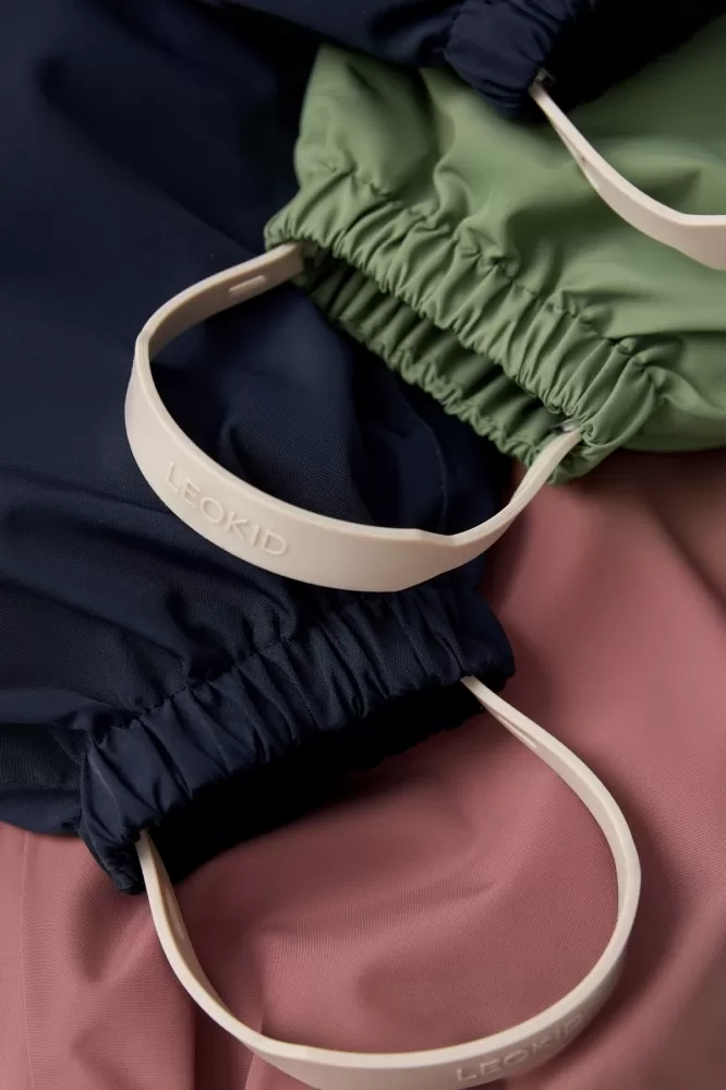 • doplňky: plastový zip s kovovým jezdcem, silikonová nášivka s logem Leokid, elastické polyesterové šle, a silikonové nánožníky
