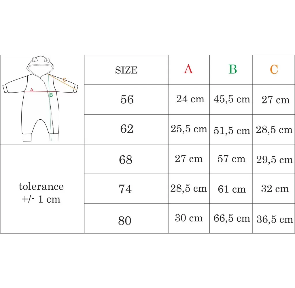 Roztomilý stylový a praktický zimní overálek s kapucí a oušky Nicol Lea pro miminka. Každé miminko v něm bude naprosto úchvatné a v pohodlí teploučka. Je vyrobený z kvalitní látky, která je velmi příjemná na dotek. Materiál si po dlouhou dobu zachovává svůj původní tvar. Overálek je podšitý z hřejivého materiálu tzv. Wellsoftu. Rukávky lze ohrnout a tím vynikne hřejivá podšívka. Boční zapínání po celé délce na zip usnadní oblékání. Složení: vrchní materiál: 95% bavlna, 5% elastan, podšívka 90% polyester, 10% bavlna- typ welsoft. Ideální pro miminka na zimu a podzim.