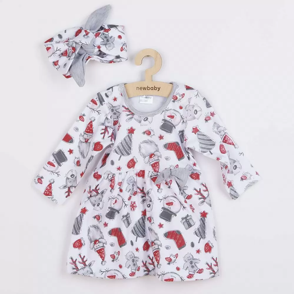 New Baby Kojenecké bavlněné šatičky s čelenkou Christmas
