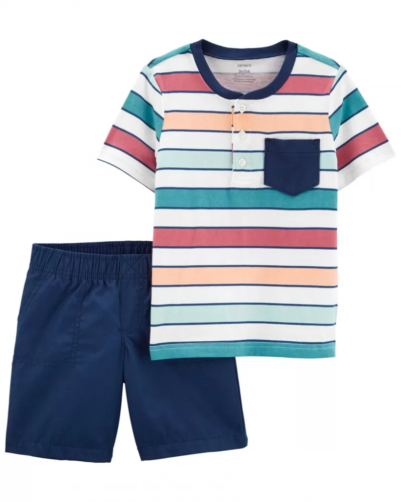 CARTER'S Set 2dílný triko kr. rukáv, kraťasy Color Stripes kluk 6m