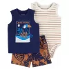 CARTER'S Set 3dílný body bez rukávů, tílko, kraťasy Navy Bird kluk NB