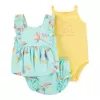 CARTER'S Set 3dílný body na ramínka, tílko, kalhotky Blue Floral holka 6m