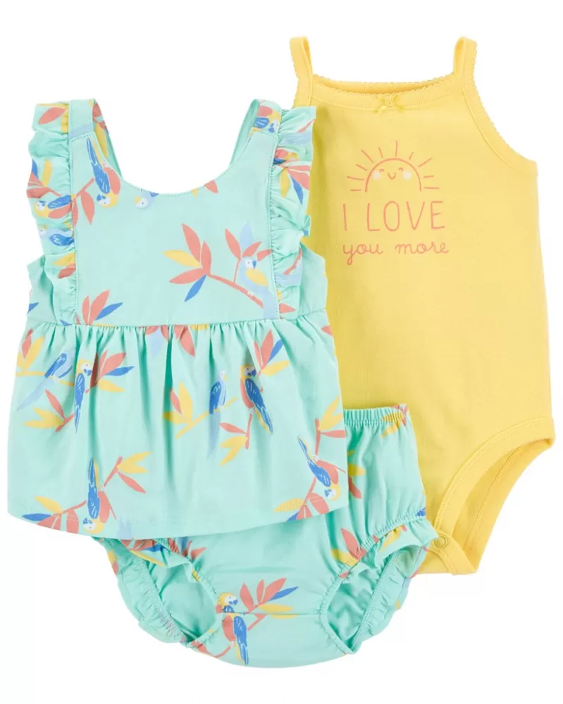 Všechny modely značky Carter's jsou vyrobeny ze super měkké bavlny a spoustou lásky. Set 3.dílný je velmi vhodný i do výbavičky děťátka. Nemusíte přemýšlet nad kombinací. Jednoduše stačí jen obléct. Všechny výrobky jsou navrženy tak, aby byly velmi pohodlné pro nošení a v trendy barvách. Sety jsou velmi oblíbené u maminek. Vlastnosti: - 3 kusy v setu - oblékání děťátka je jednodušší - příjemně měkký materiál - komfortní pro nošení - vhodné pro teplé dny - dodáváno na ramínku Materiálové složení: 100% bavlna Údržba: Doporučujeme dodržovat prací symboly uvedené na etiketě výrobku. Pro praní doporučujeme použít prací prostředky značky Chicco. Najdete na našem eshopu.