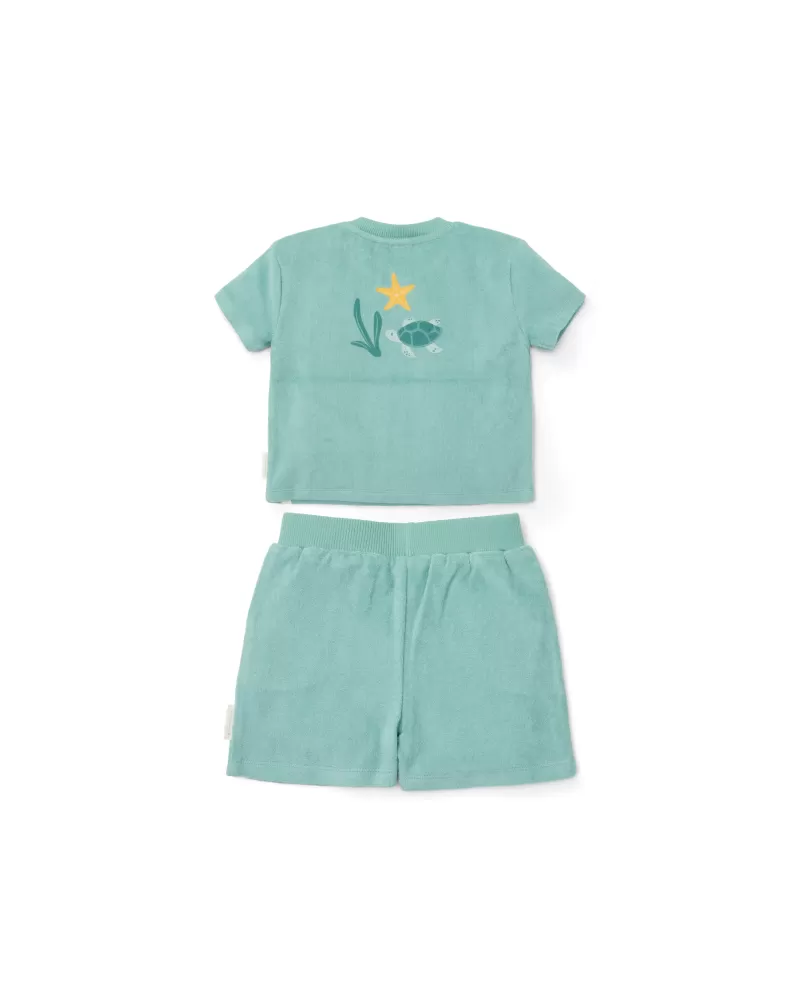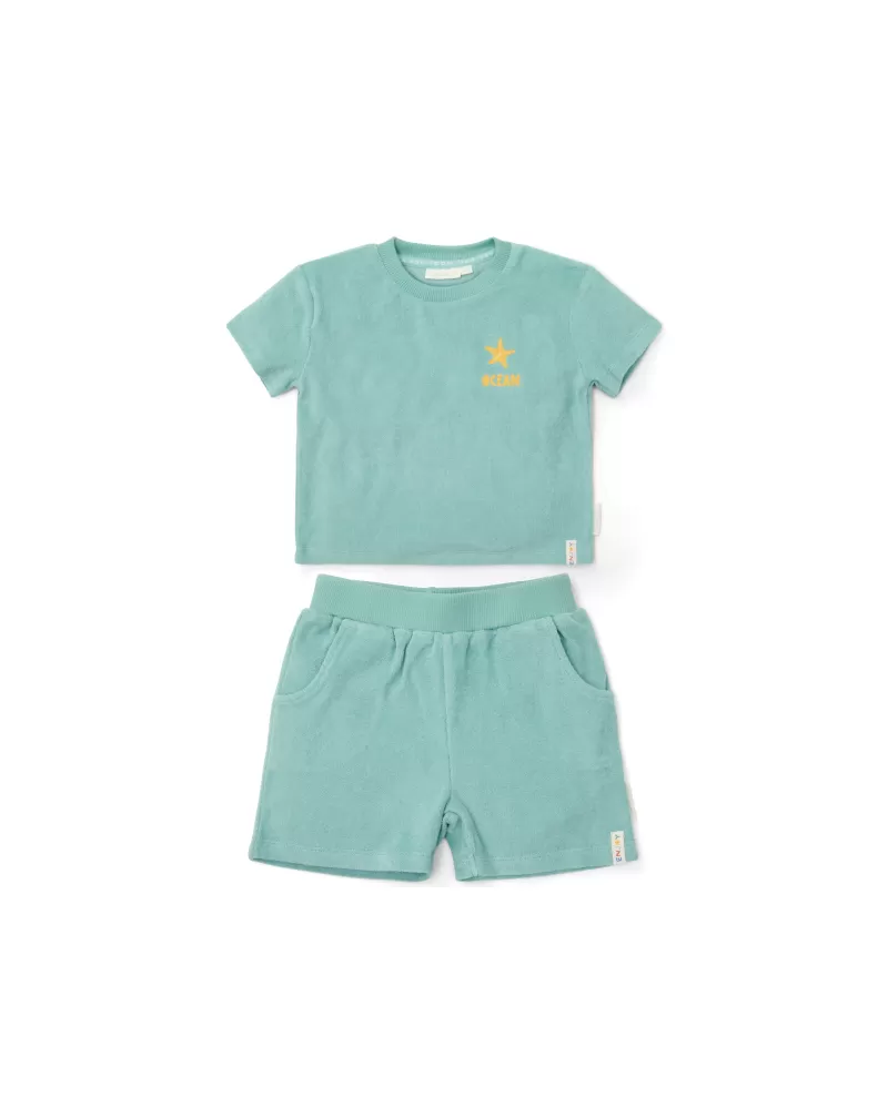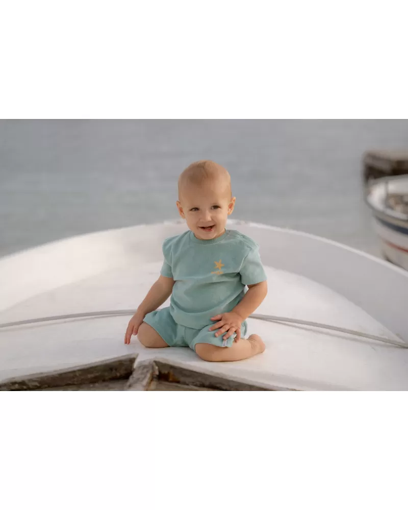 Tričko a kraťasy z příjemného bavlněného froté materiálu jsou ideální pro teplé letní dny na pláži, zahradě i na výletech a procházkách.