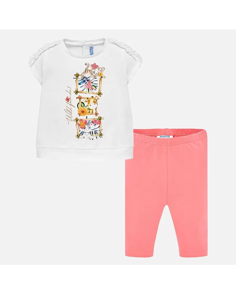 Krásný setík bílé veselé tričko se zvířátky a růžové leginy pro holčičku od kvalitní španělské značky MAYORAL.
