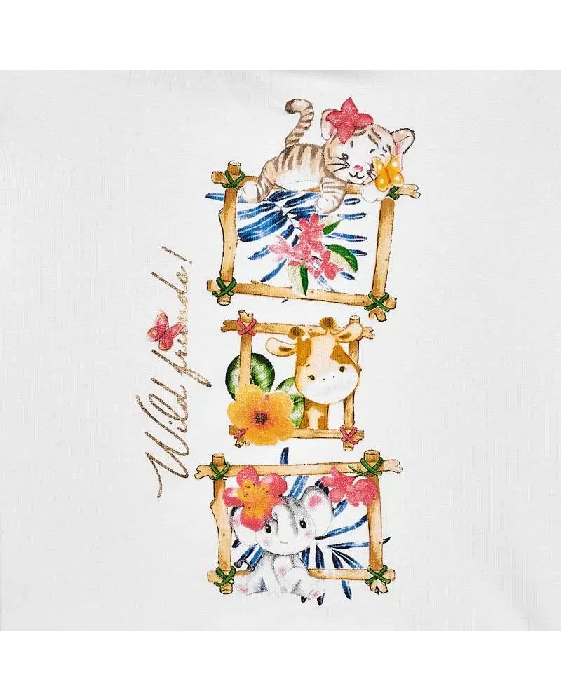 Krásný setík bílé veselé tričko se zvířátky a růžové leginy pro holčičku od kvalitní španělské značky MAYORAL. Materiál: 92% bavlna + 8% elastan Celý popis