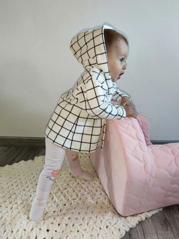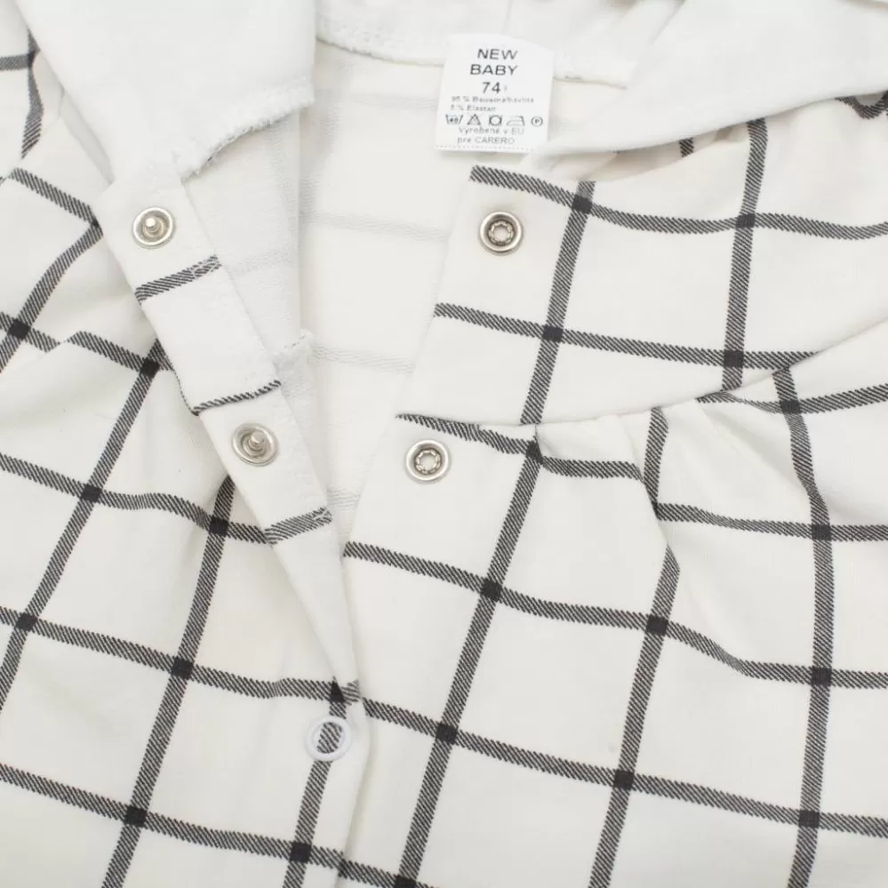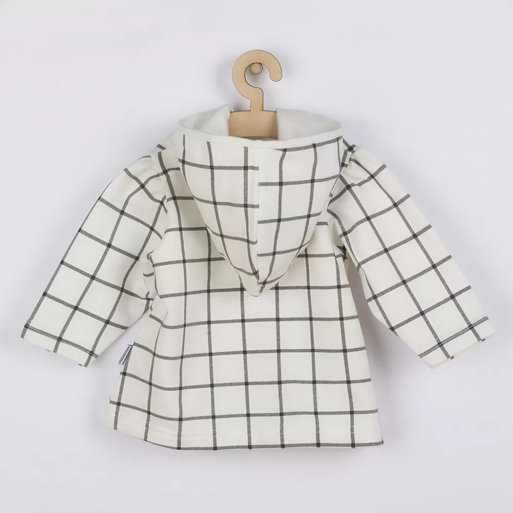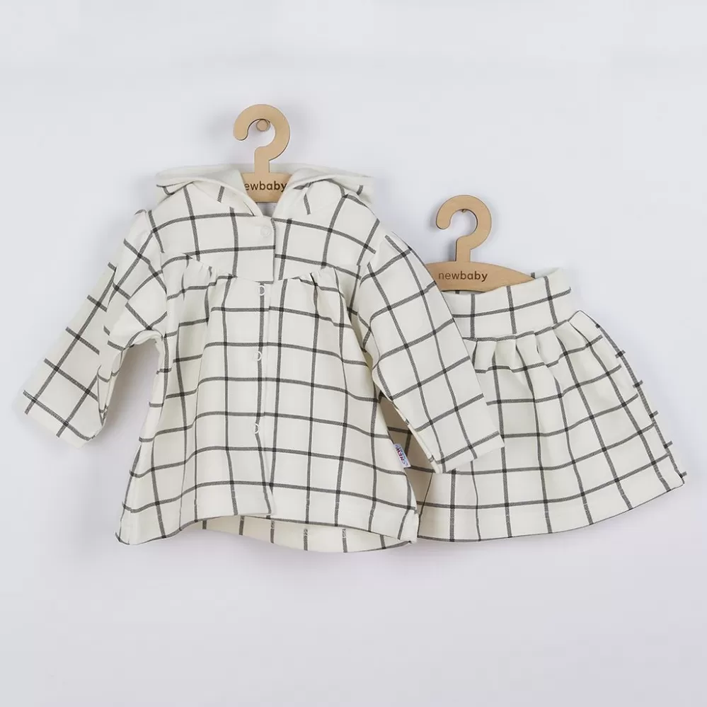 2-dílný komplet pro holčičku české značky New Baby Cool Girls. Komplet se skládá z mikinky a sukýnky. Mikinku Áčkového střihu zdobí praktická kapuce podšitá bavlněnou podšívkou a stále moderní kostkovaný vzor. Zapínání na cvočky po celé délce. Kolový stříh sukýnky zdobí širší pás s gumičkou. Krásný komplet do šatníku malých parádnic. Materiál: 95% bavlna, 5% elastan.