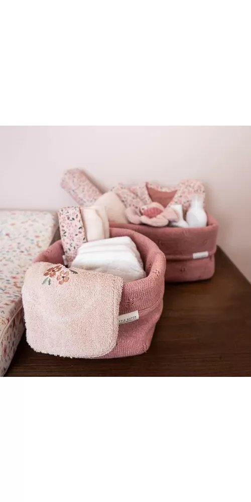 Košík v krásném pleteném provedení je vyroben z pevného bavlněného materiálu. Využijete jej pro přehledné uložení všeho, co potřebujete mít po ruce při každodenní péči o vaše miminko. Ohrnovací okraj umožňuje přizpůsobit výšku košíku vašim potřebám.
