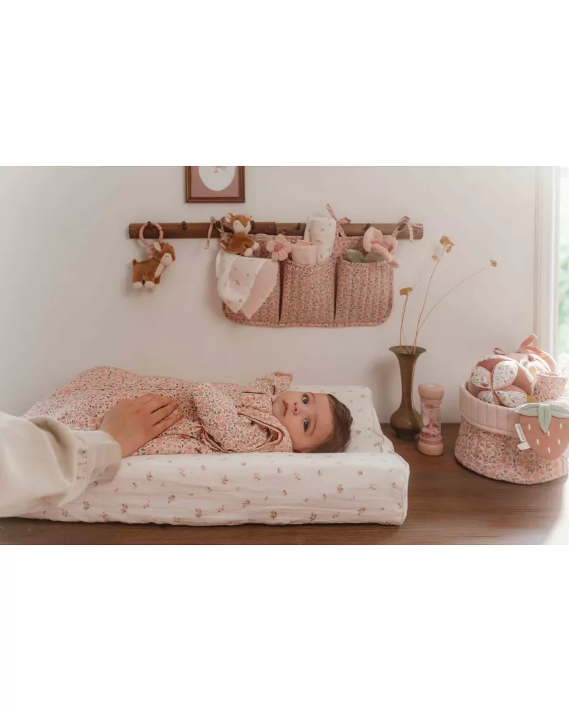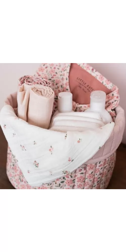 Košík s krásným květinovým potiskem je vyroben z pevného bavlněného materiálu. Využijete jej pro přehledné uložení všeho, co potřebujete mít po ruce při každodenní péči o vaše miminko. Košík bude zároveň krásným doplňkem na přebalovacím pultu či poličce v dětském pokoji. Oboustranné provedení umožňuje volbu vzhledu košíku dle vašich preferencí.