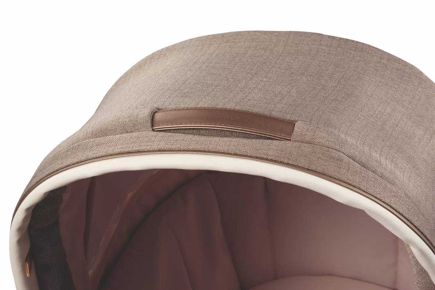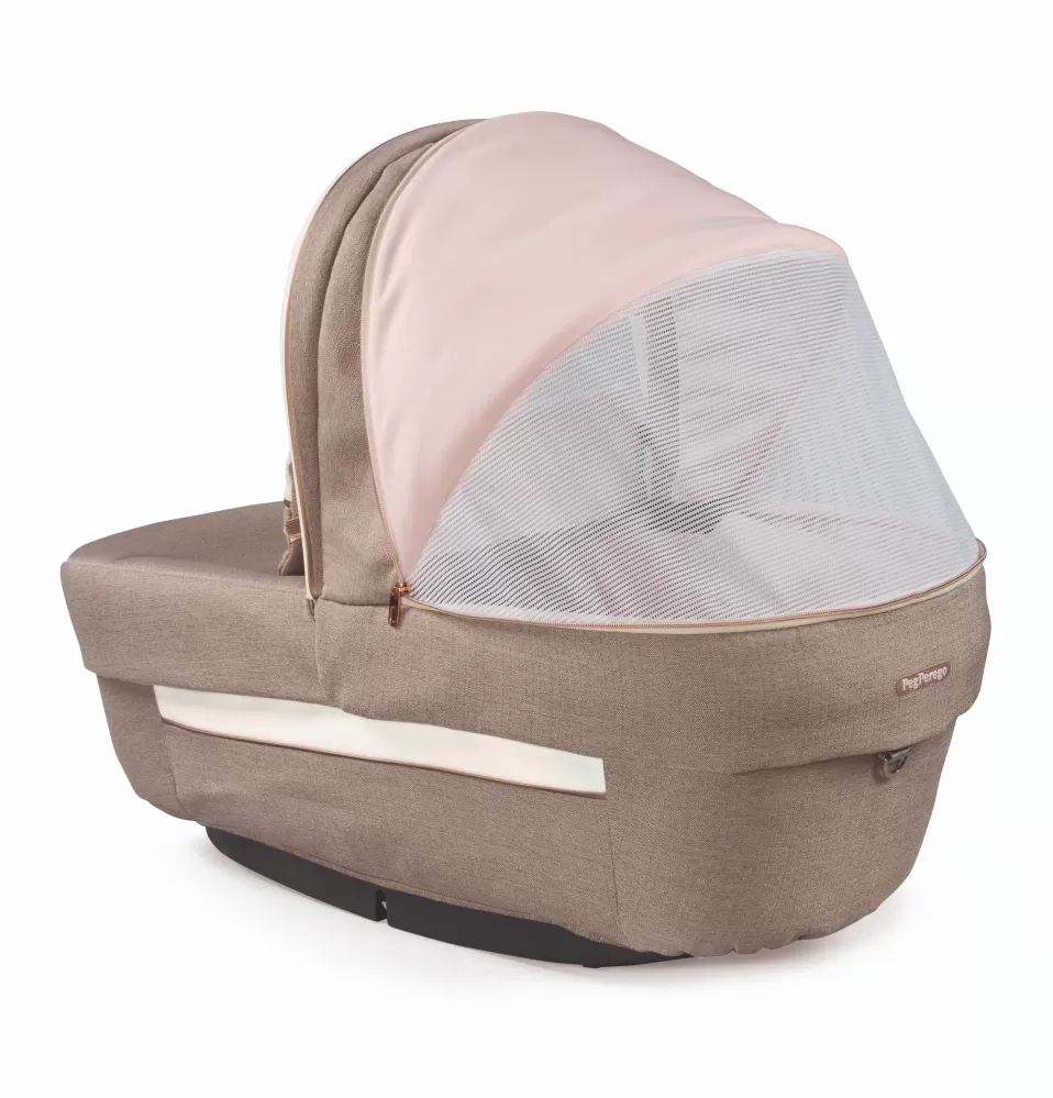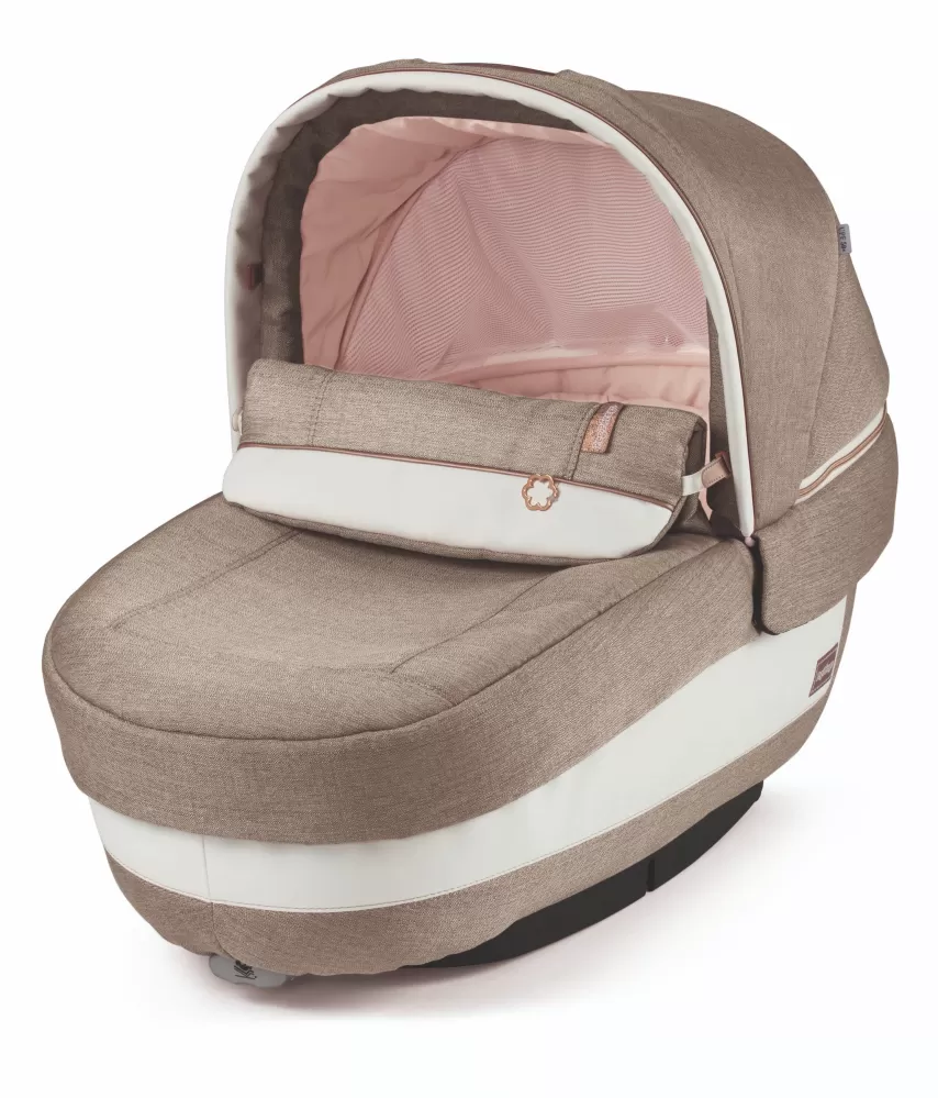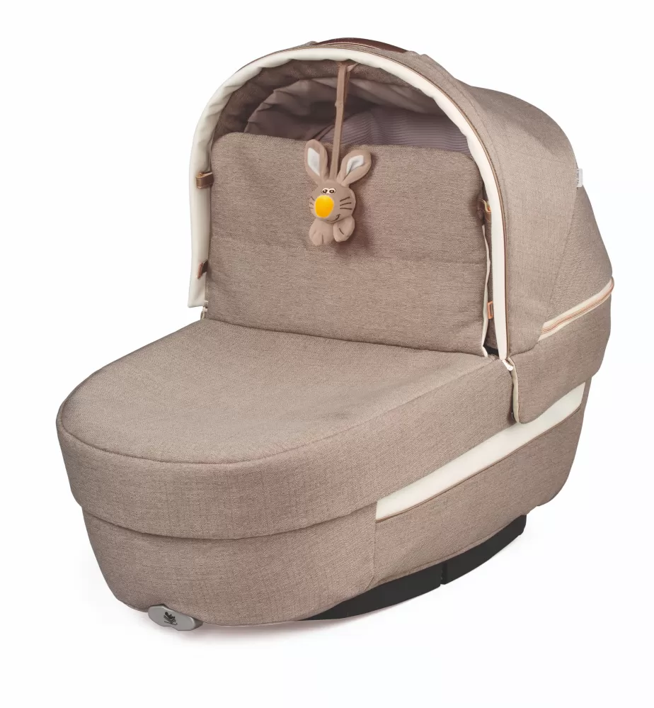Elegantní madlo na přenášení z eko kůže je patentem Peg Perego. Stříšku můžete spustit jednou rukou, i když držíte své dítě.