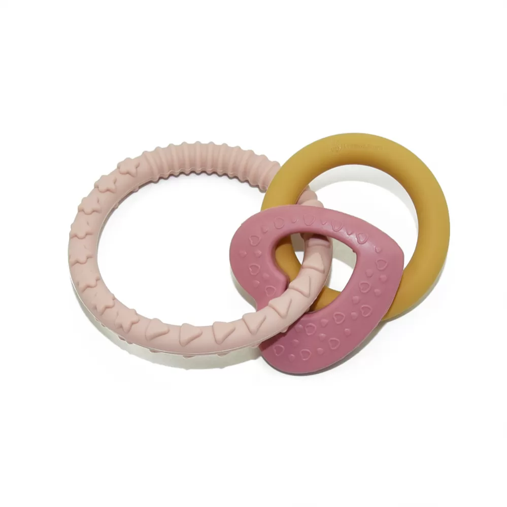 Silikonové kousátko ELEFI Měkké silikonové kousátko sestávající z kroužku se 3 zajímavými prvky je vyrobeno výhradně z potravinářského silikonu bez obsahu BPA. Nejkvalitnější odolné materiály zaručují bezpečnost vašeho děťátka během hry a prořezávání zoubků. Pružný silikon je dokonale vhodný pro citlivé dětské dásně. Pomáhá zmírnit bolest, která vzniká při prořezávání zoubků, neboť při kousání kousátka se jemně masírují dásně. Kousátko lze zchladit v chladničce a dát děťátku studené. Různé povrchy kousátka stimulují správný vývoj čelisti. Přiměřená velikost kousátka umožňuje děťátku snadné uchopení a vynikající, bezpečnou hru, která stimuluje jeho vývoj.