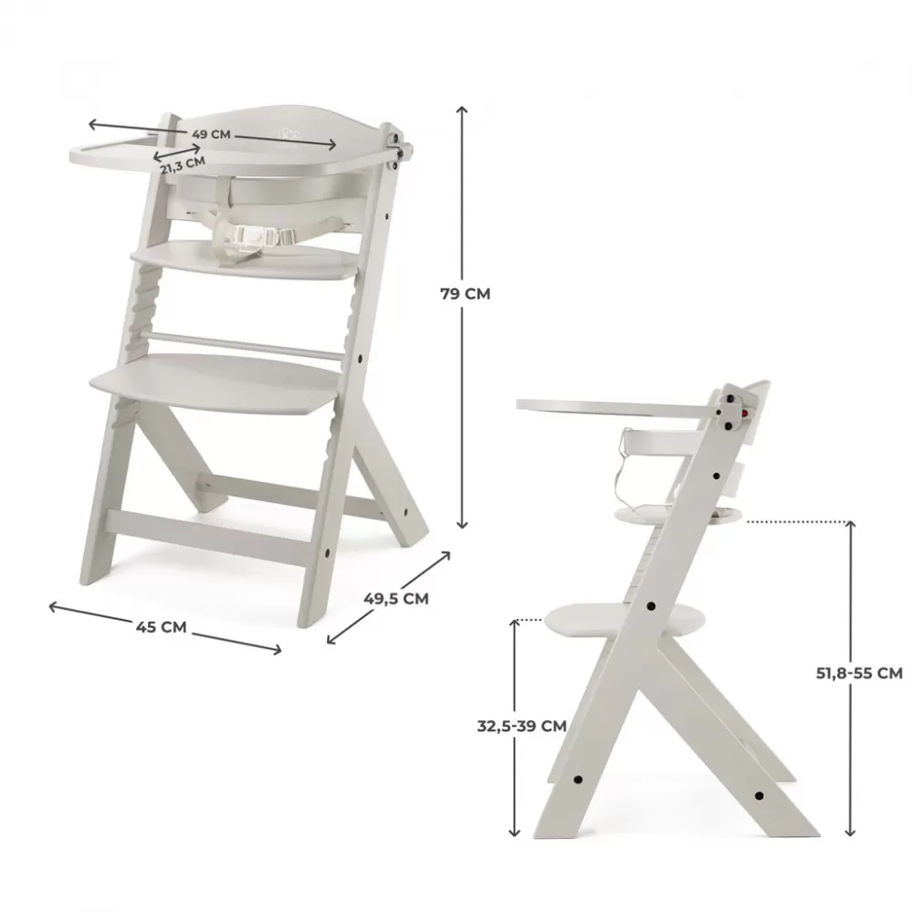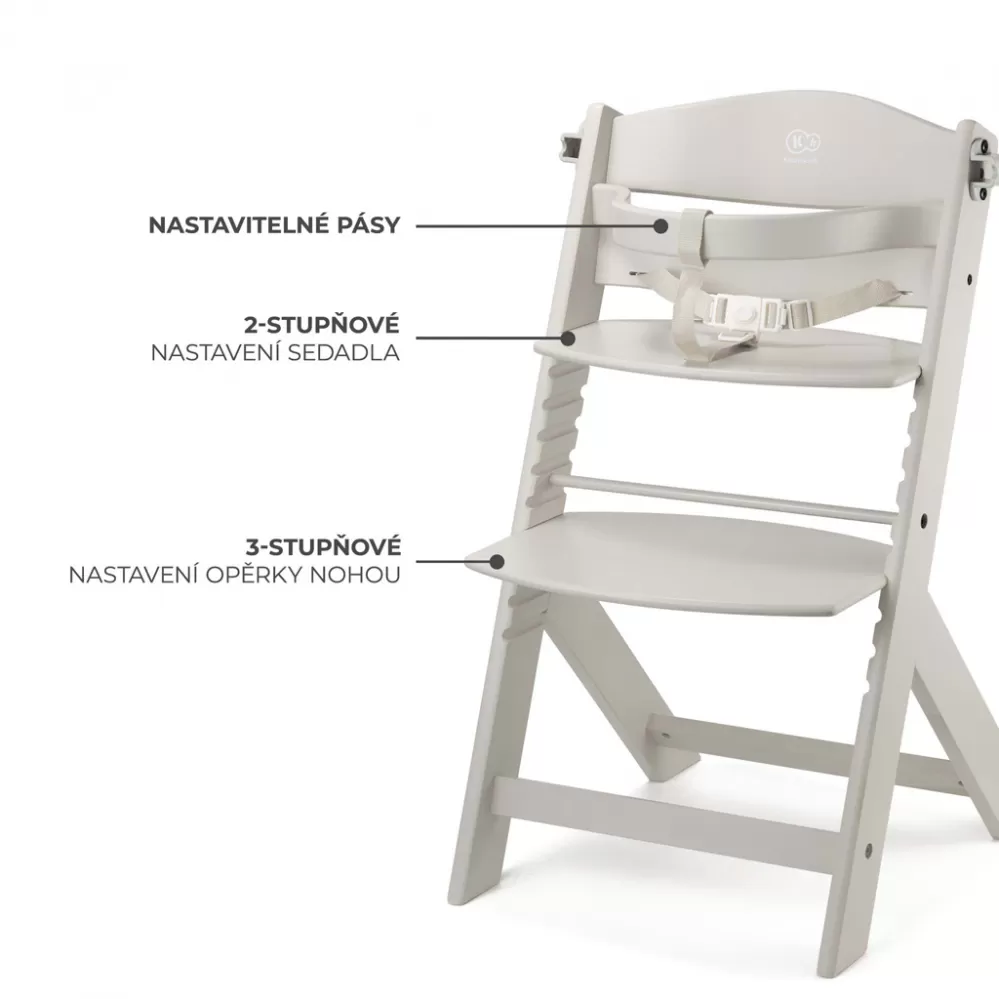 Existuje vůbec jídelní židlička, která bude sloužit vašemu dítěti několik let? Ano! Právě takovou židlí je ENOCK. Tento nadčasový kus nábytku je bezpečnou a praktickou vysokou jídelní židličkou i ergonomickou židlí pro starší děti. Jak je to možné? Výška sedáku a opěrky nohou je nastavitelná, což usnadňuje nastavení židle podle věku dítěte. ENOCK je navržena s ohledem na vaši rodinu - je to vysoká židle, která se bude hodit k interiéru vašeho domova a pak bude sloužit vašemu dítěti jako hrací židle nebo ke židle ke stolu. A co víc, můžete ji snadno přizpůsobit ke stolu v kuchyni, jídelně nebo v obývacím pokoji. Díky tvarovanému opěradlu bude dítě udržovat správné držení těla při jídle a bude také moci trávit čas společně s dospělými u stolu.