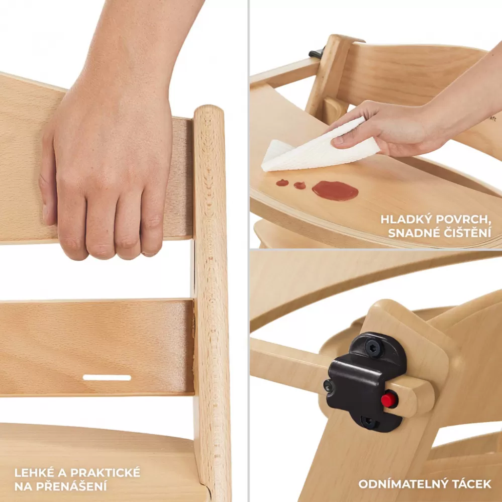 - židle se snadno čistí i po nejpůsobivějším obědu bohatém na zážitky. Stačí ho okamžitě otřít vlhkým hadříkem a pak vysušit papírem.