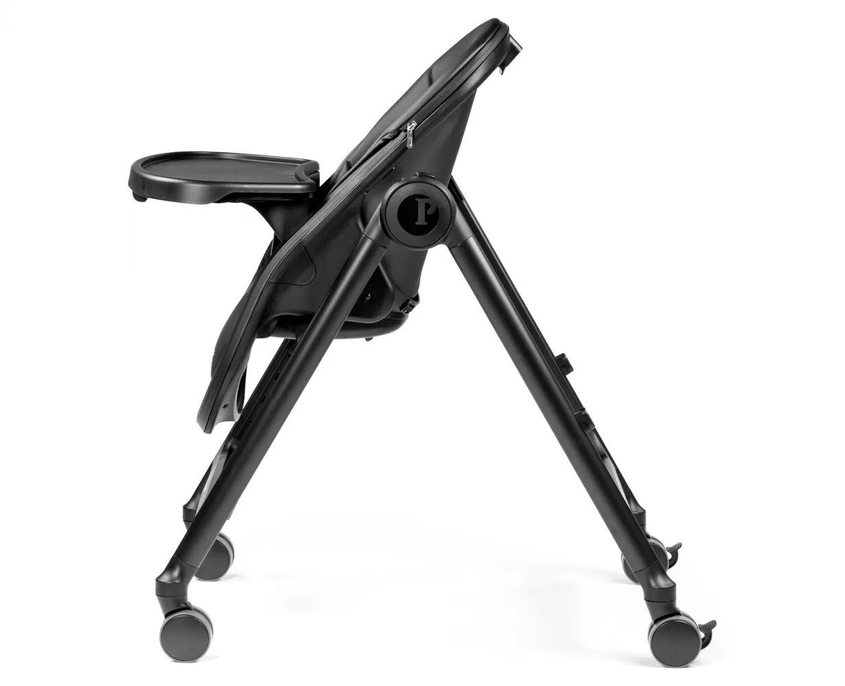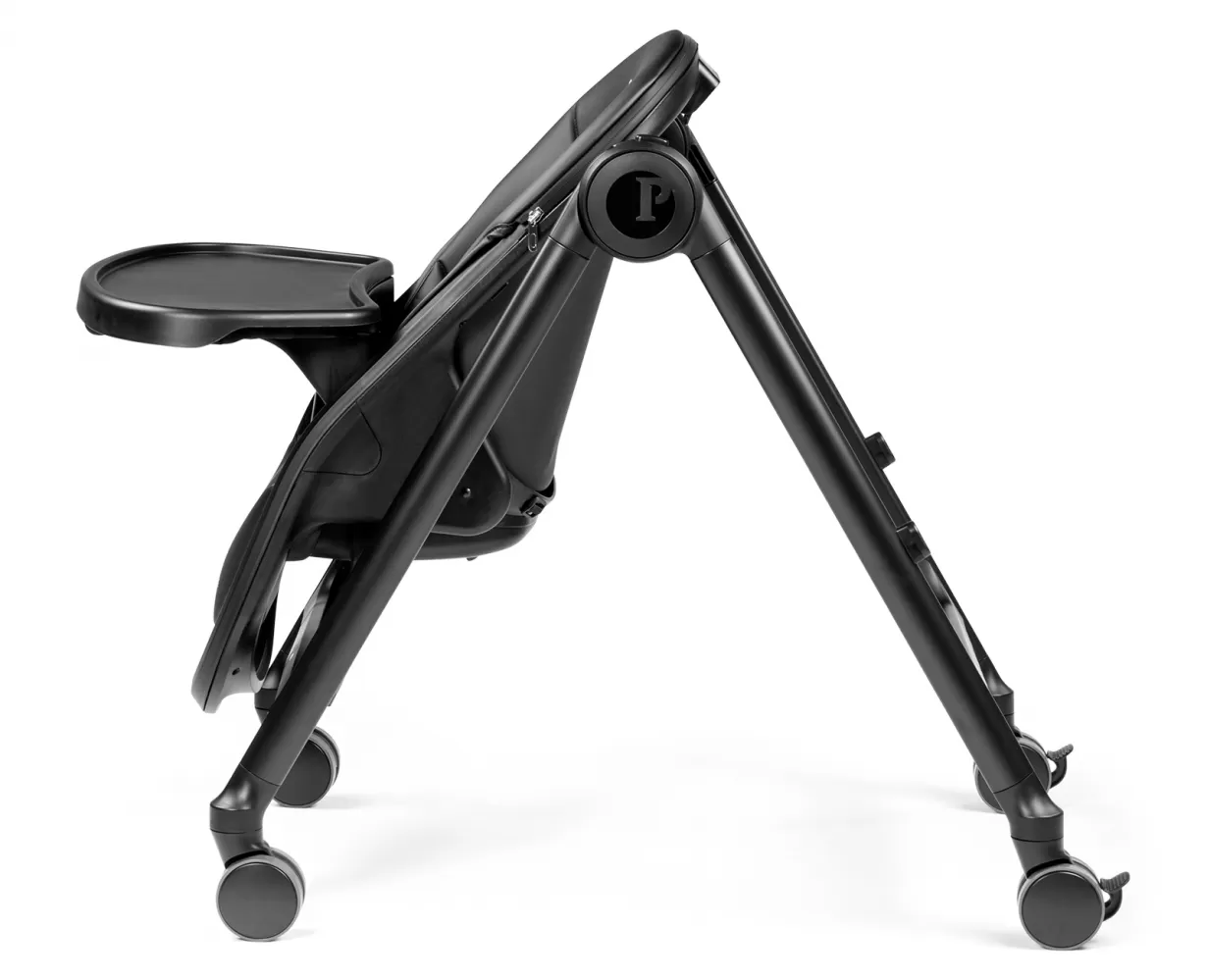 Ve složeném stavu je židle extrémně kompaktní a samostatně stojí, včetně jídelního pultu.