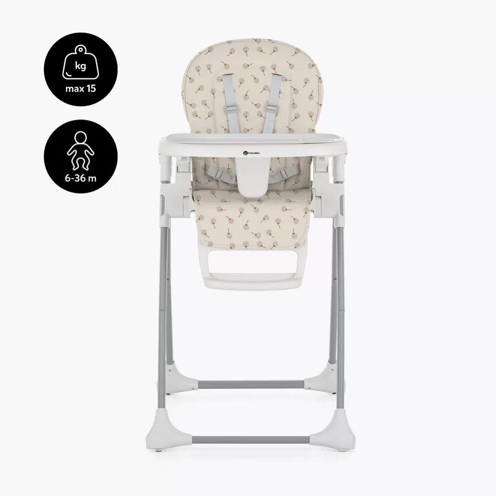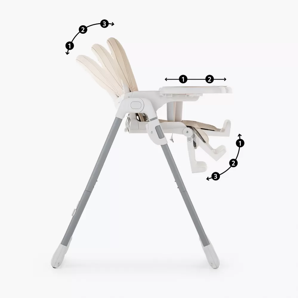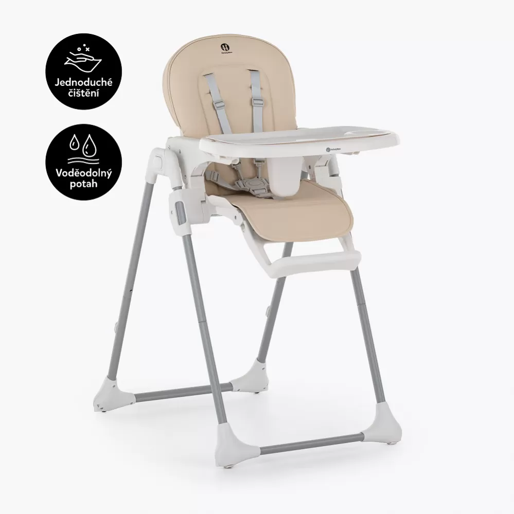 Péče o životní prostředí, kterou jsme při tvorbě této židle zohlednili, nezastínila nejdůležitější aspekty výrobku – byl totiž navržen tak, aby co nejbezpečněji zlepšil každodenní život děťátka i rodičů. Židle má všechny funkce, které usnadňují každodenní krmení: lze ji snadno sundat a vyčistit, má 5-bodové bezpečnostní pásy, nastavitelnou opěrku zad, nastavitelnou opěrku nohou, nastavitelnou výšku, dvě polohy pro podnos s horní částí, kterou lze mýt v myčce nádobí. Stabilní konstrukce židle zajistí bezpečnost vašeho dítěte bez ohledu na to, jak je aktivní nebo pohyblivé. Vysoce kvalitní provedení, promyšlená konstrukce, moderní a originální design a kompaktní skládání jsou nadčasové vlastnosti, které zajistí pohodlí pro vaše dítě od okamžiku, kdy se naučí sedět.