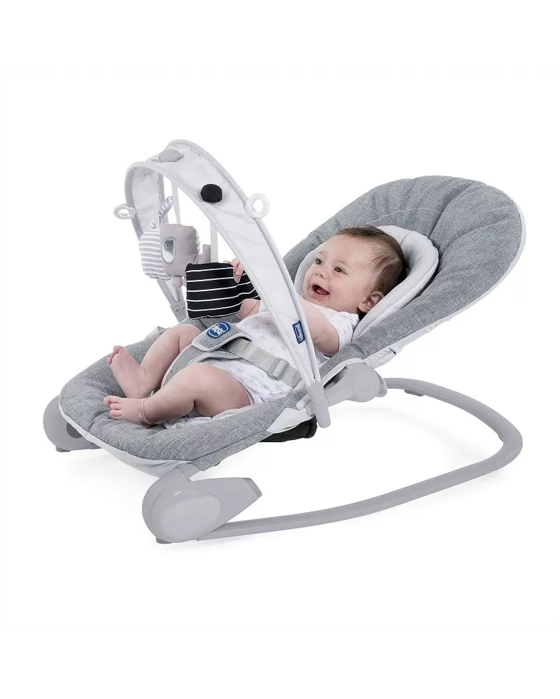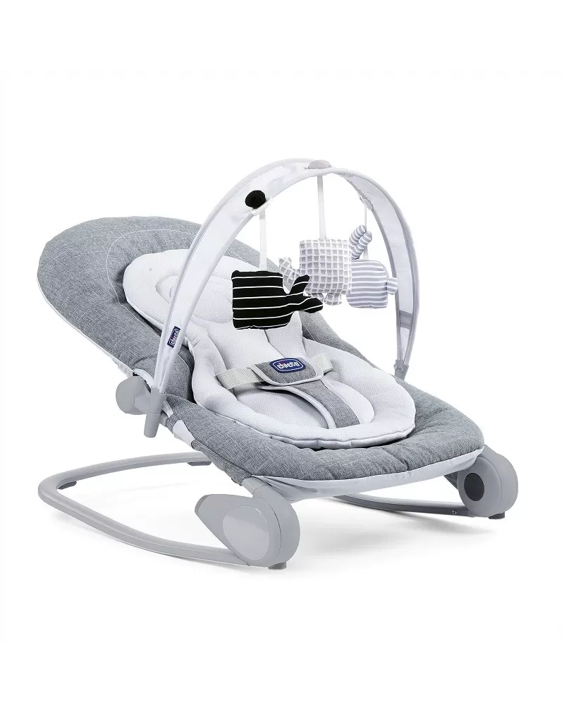 Houpátko Chicco Hoopla je nejen místo pro odpočinek děťátka, ale je vhodné pro zábavu a přispívá k jeho rozvoji. Inovativní posouvatelný pás SlideLine umožňuje přesouvat hračky na hrazdičce v libovolném pořadí, a tím nabízí spoustu nových scénářů hry. Díky tomu si trénuje paměť, koordinaci pohybů, šustění stimuluje sluch a děťátko má před sebou pokaždé novou výzvu. Hračky, které jsou součástí balení, lze sundat a používat jako samostatnou hračku.