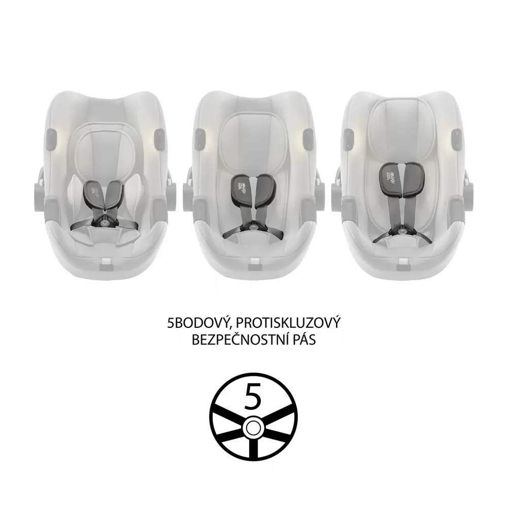 Věříme, že 5bodový bezpečnostní pás je nejbezpečnější způsob připoutání vašeho dítěte v autosedačce, protože zajistí naprostou ochranu a stabilitu dítěte. V případě nehody bezpečnostní pás rozloží sílu nárazu na 5 bodů, dva na ramenou, dva na kyčlích a jeden na sponě mezi nohama. Pomáhá tak chránit vaše dítě před nárazem z jakékoliv strany.