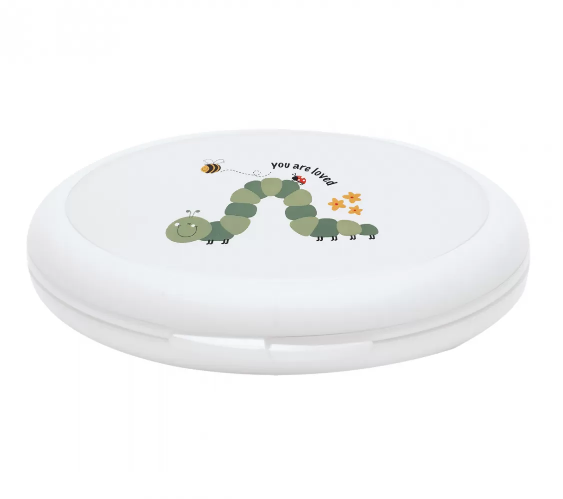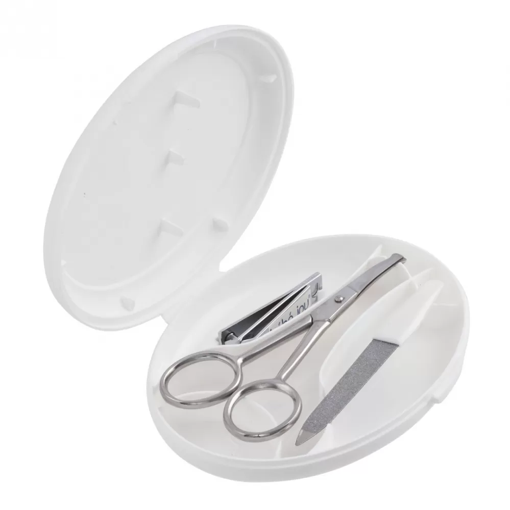 Obsahuje nůžky se zakulacenými konci, pilníček na nehty a také kleštičky na nehty. Vše je vyrobeno z nerezavějící ušlechtilé oceli. Krabička s výrazným motivem na víčku chrání před prachem a pomáhá udržovat manikúru v čistotě. Ale i přesto před každým použitím jednotlivé nástroje pečlivě očistěte a u novorozenců i desinfikujte roztokem lihu.
