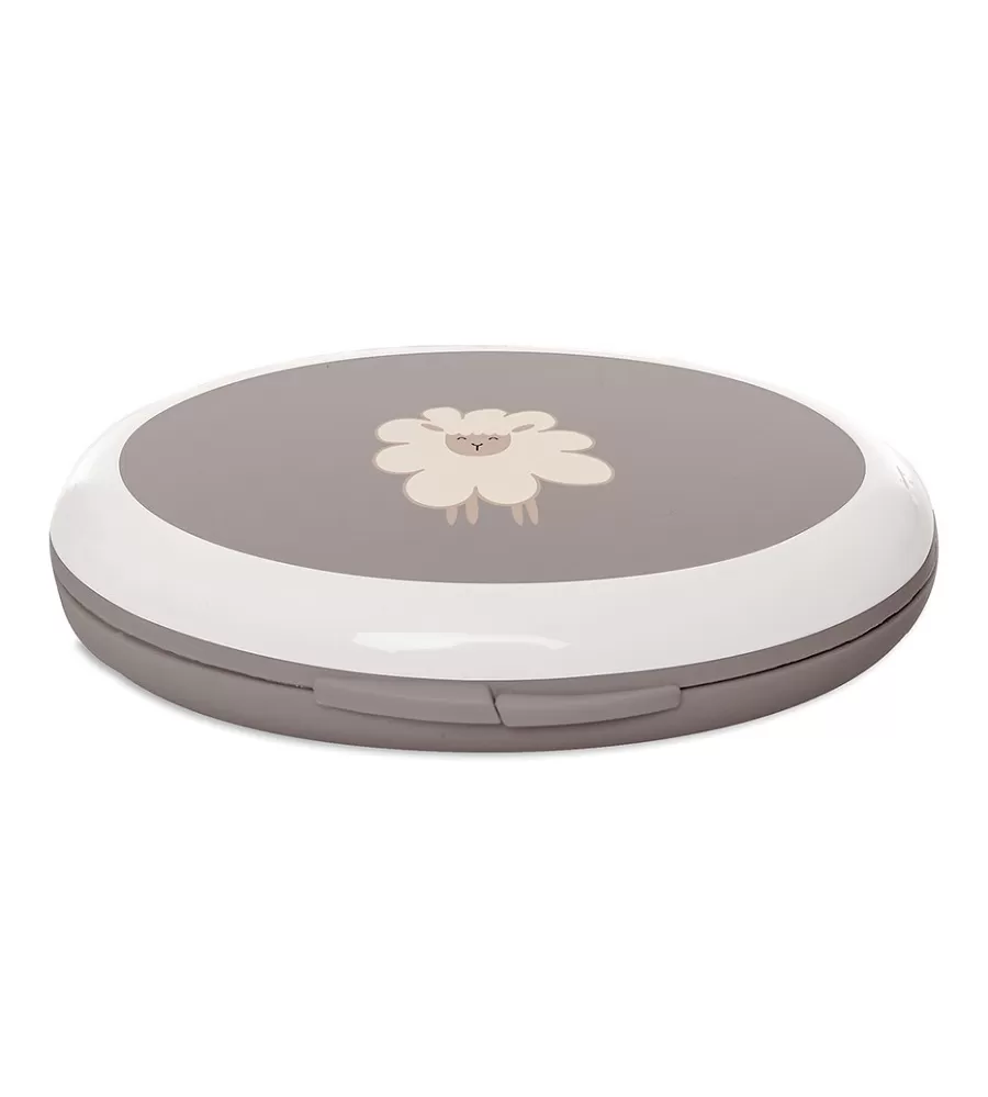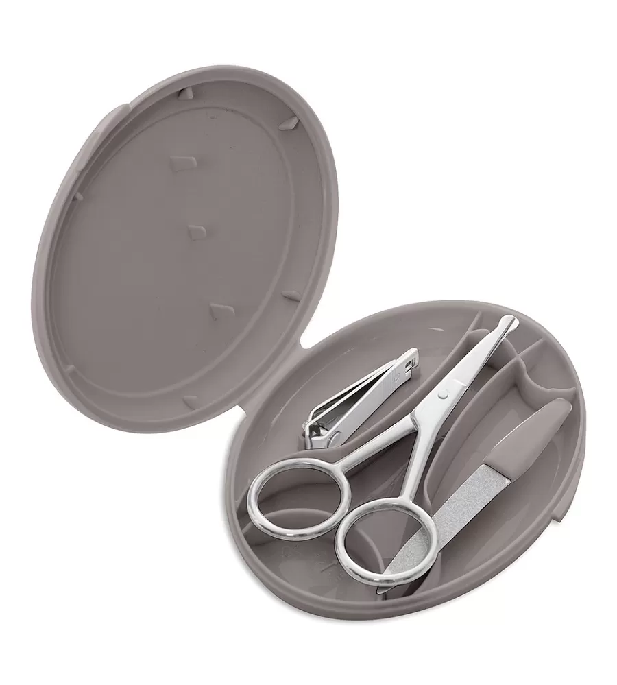 Obsahuje nůžky se zakulacenými konci, pilníček na nehty a také kleštičky na nehty. Vše je vyrobeno z nerezavějící ušlechtilé oceli. Krabička s výrazným motivem na víčku chrání před prachem a pomáhá udržovat manikúru v čistotě. Ale i přesto před každým použitím jednotlivé nástroje pečlivě očistěte a u novorozenců i desinfikujte roztokem lihu.