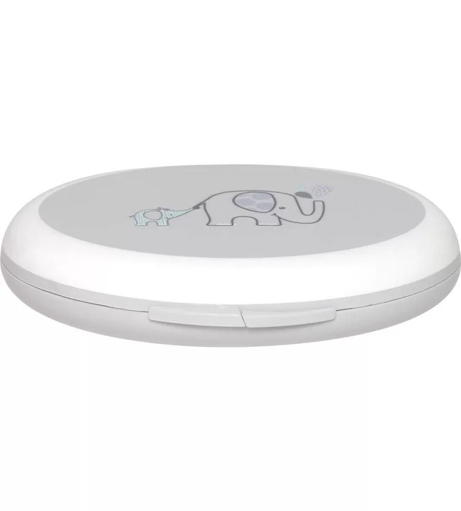 Obsahuje nůžky se zakulacenými konci, pilníček na nehty a také kleštičky na nehty. Vše je vyrobeno z nerezavějící ušlechtilé oceli. Krabička s výrazným motivem na víčku chrání před prachem a pomáhá udržovat manikuru v čistotě. Ale i přesto před každým použitím jednotlivé nástroje pečlivě očistěte a u novorozenců i desinfikujte roztokem lihu.