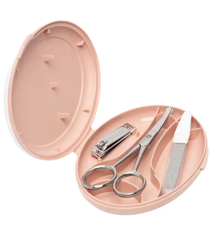 Obsahuje nůžky se zakulacenými konci, pilníček na nehty a také kleštičky na nehty. Vše je vyrobeno z nerezavějící ušlechtilé oceli. Krabička s výrazným motivem na víčku chrání před prachem a pomáhá udržovat manikúru v čistotě. Ale i přesto před každým použitím jednotlivé nástroje pečlivě očistěte a u novorozenců i desinfikujte roztokem lihu.