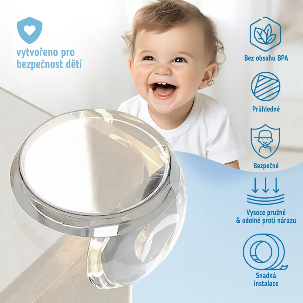 Chrániče rohů jsou široce používaný bezpečnostní prvek díky použitému materiálu a měkkosti. Lze je použít k ochraně desek stolů, skříní, schodů a všech dalších prvků, které mají ostré hrany a rohy a mohly by tak představovat bezpečnostní riziko pro vaše děti.