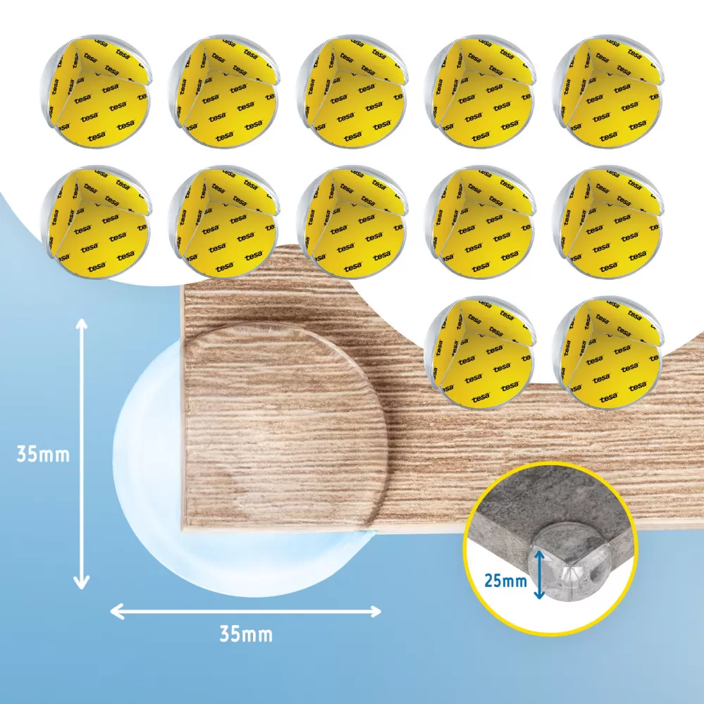 Oboustranná silná lepící páska, která je součástí balení, zajistí nejen jednoduchou montáž bez použití dalších nástrojů, ale také správné upevnění, aby ochrana po prvním kontaktu nespadla. Oválný tvar ochrání hranu stolu, takže rodič může v klidu sledovat, jak si děti hrají kolem.
