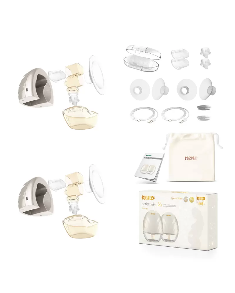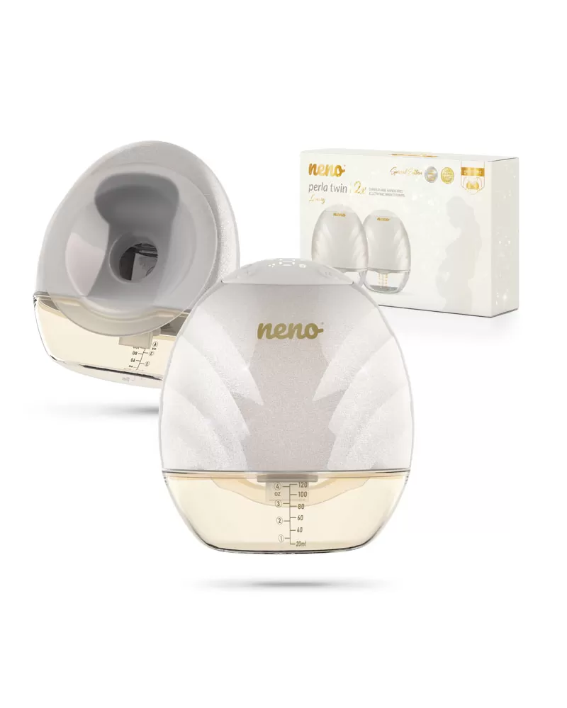 Neno Perla Twin je inovativní bezdrátová handsfree odsávačka mateřského mléka díky které toho zvládnete opravdu hodně. Je to dvojitá verze odsávačky Perla, díky které umíte odsávat z obou prsů zároveň. Její lehká a malá konstrukce se vejde bez námahy do košíku podprsenky ke kojení a umožní Vám mít volné ruce. Odsávačka mléka funguje na základě tří fází s 9 úrovněmi nastavení. Má anatomický prsní štít ve tvaru prsu, který v úhlu 105 stupňů obepíná prsy, čímž napomáhá toku mléka. Součástí jsou dvě redukce pro zmenšení velikosti prsního štítu na 19 mm a 22 mm.