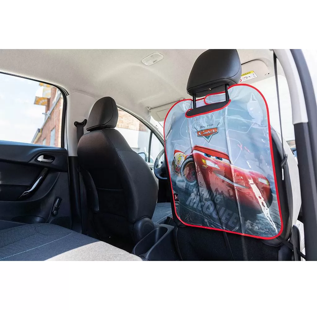 Praktická folie do auta z průsvitného materiálu chrání zadní část potahu sedadla před poškrábáním a zašpiněním. Veselé obrázky s motivem Cars zpříjemní Vašemu dítěti cestování. Univerzální – sedí ke každému sedadlu a dá se jednoduše připevnit pomocí gumy. Omývatelný materiál PVC, který lze jednoduše čistit. Rozměry 68x44,5 cm. Licenční produkt.