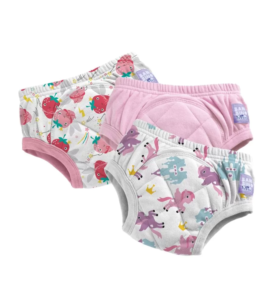 Nepropustná vrstva spolu s absorpční vrstvou částečně chrání před znečištěním okolí. Pomáhají zrychlit proces učení se na nočník avšak nenahrazují plenky. Můžete je dát dítěti jako dárek. Dodají dítěti pocit, že již vyrostlo a plenky nepotřebuje. Nepoužívejte je dříve než je dítě k přechodu na nočník připraveno. Učící plenkové kalhotky sice obsahují absopční vrstvu, která zachytí menší množství moči, ale nenahrazují plnohodnotně vícevrstvou plenku s kalhotkami. Jsou určeny pro dítě, které již přechází na nočník a občas se mu přihodí nepříjemná příhoda. V učících plenkových kalhotkách vlhkost ihned ucítí, může si ji uvědomit a posadit se na nočník. Učící plenkové kalhotky nedávejte dítěti na noc či na spaní a pokud nemáte jinou možnost vložte do nich ještě další vícevrstvou plenku Bambino Mio, která doplní absorpční kapacitu. Před prvním použitím učící plenkové kalhotky minimálně dvakrát předeperte.