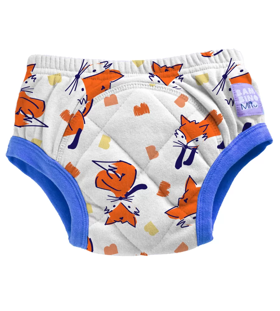 Nepropustná vrstva spolu s absorpční vrstvou částečně chrání před znečištěním okolí. Pomáhají zrychlit proces učení se na nočník avšak nenahrazují plenky. Můžete je dát dítěti jako dárek. Dodají dítěti pocit, že již vyrostlo a plenky nepotřebuje. Nepoužívejte je dříve než je dítě k přechodu na nočník připraveno. Učící plenkové kalhotky sice obsahují absopční vrstvu, která zachytí menší množství moči, ale nenahrazují plnohodnotně vícevrstvou plenku s kalhotkami. Jsou určeny pro dítě, které již přechází na nočník a občas se mu přihodí nepříjemná příhoda. V učících plenkových kalhotkách vlhkost ihned ucítí, může si ji uvědomit a posadit se na nočník. Učící plenkové kalhotky nedávejte dítěti na noc či na spaní a pokud nemáte jinou možnost vložte do nich ještě další vícevrstvou plenku Bambino Mio, která doplní absorpční kapacitu. Před prvním použitím učící plenkové kalhotky minimálně dvakrát předeperte.