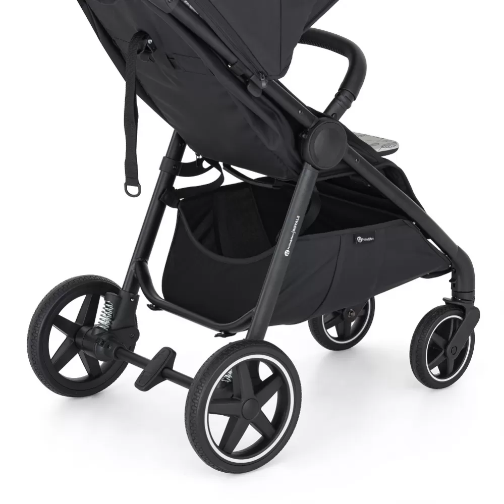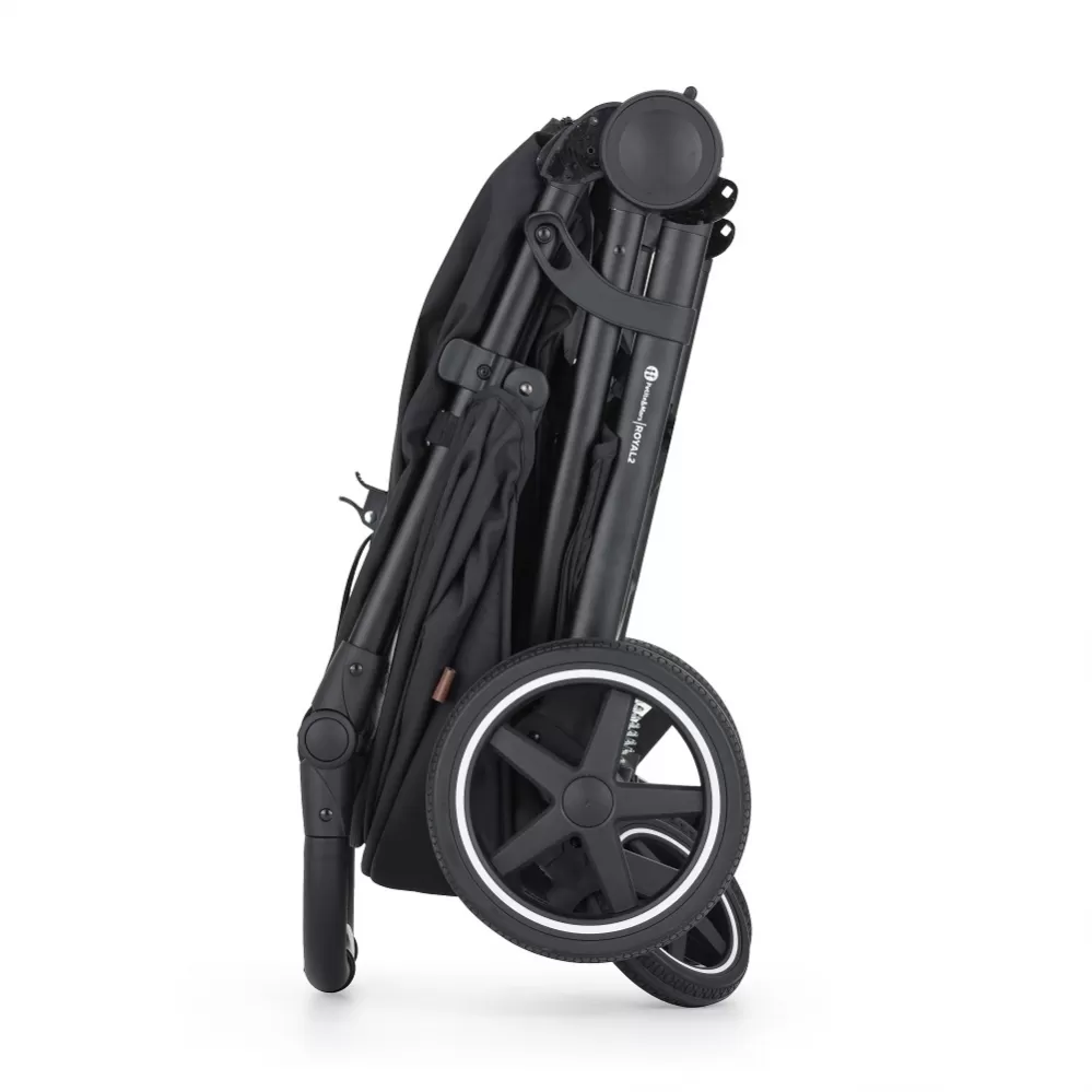 Inovovaná konstrukce kočárku Royal2 v nové černé barvě. Pořiďte si zvlášť konstrukci a zvlášť stříšku z široké nabídky barev. Stříšku kdykoli vyměníte a kočárek se vám tak nikdy nezunuje. Nyní v nabídce již také designové vzorované stříšky Royal2 Limited 100. Elegantní a pevná černá konstrukce druhé generace, s celopryžovými koly, s madlem a rukojetí v nadčasové černé eko-kůži. Pro kompletní kočárek je třeba dokoupit stříšku Royal2. Výborné jízdní vlastnosti, promyšlené detaily a nadčasový elegantní design jsou určující vlastnosti kočárku Royal2. Druhá generace oblíbeného modelu přináší zcela novou konstrukci, díky které je kočárek ještě stabilnější. Vylepšená sedací část umožňuje ventilaci i v horkých dnech a spousta funkčních detailů zajistí, že si rodinnou procházku všichni užijete. Děťátko ocení pohodlí a dostatečný prostor a díky vylepšené síťované opěrce zad a extra dlouhé stříšce si vychutná komfortní spánek i během horkého léta. Mamince při usazování děťátka pomůže otočné madlo a nová magnetická přezka. A i vyšší tatínek si díky nastavitelné výšce rukojeti užije procházku bez omezení. Celogumová kolečka jsou nejmodernějším materiálem na trhu a spolu s odpružením konstrukce tak Royal2 zajišťuje stabilní jízdu i na nerovném terénu, a to bez rizika defektu. Pokud se rodinka rozroste, stačí na kočárku vyměnit novou barvu stříšky a kočárek Royal2 zůstane parťákem rodiny po dlouhá léta.