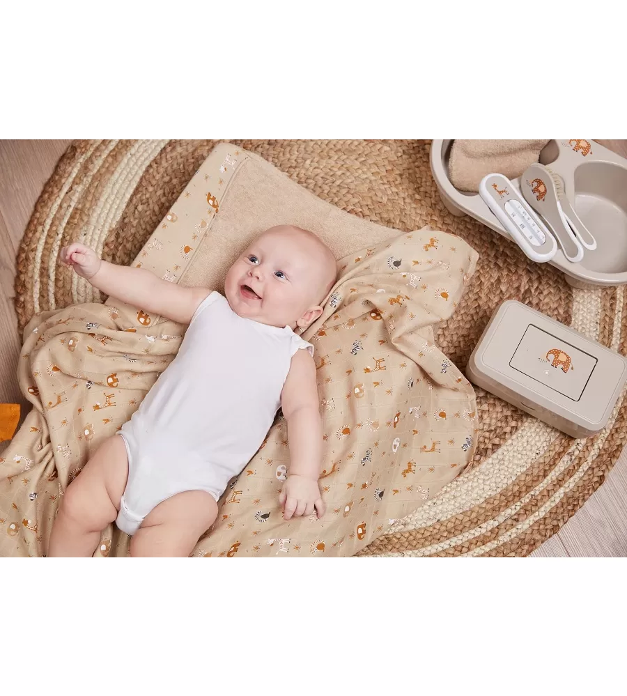 Komfortní, prostorná, celopotištěná přebalovací podložka s třístranným zvýšeným okrajem. Přebalovací podložka Bébé-jou má pohodlnou velikost. Je vyrobena z vysoce kvalitní polyetherové PU pěny s dlouhou životností. Tyto speciální vlastnosti zaručují, že je hlavička i krček dítěte obzvlášť dobře podepřen. Okraj zvýšený na třech stranách zajistí, že dítě leží pohodlně a bezpečné ve středu. Fólie a prodyšná pěna jsou vyrobeny z ekologicky šetrných materiálů a jsou bez škodlivých látek. A pokud zabráníte působení olejů a mastí na její povrch, bude bez většího opotřebení sloužit po celou dobu potřeby. Certifikované Oeko Tex.