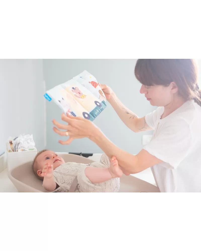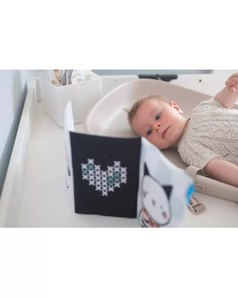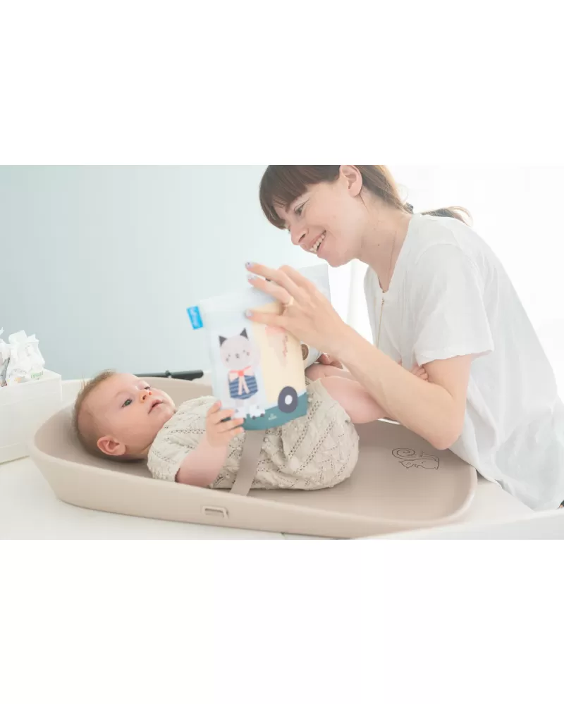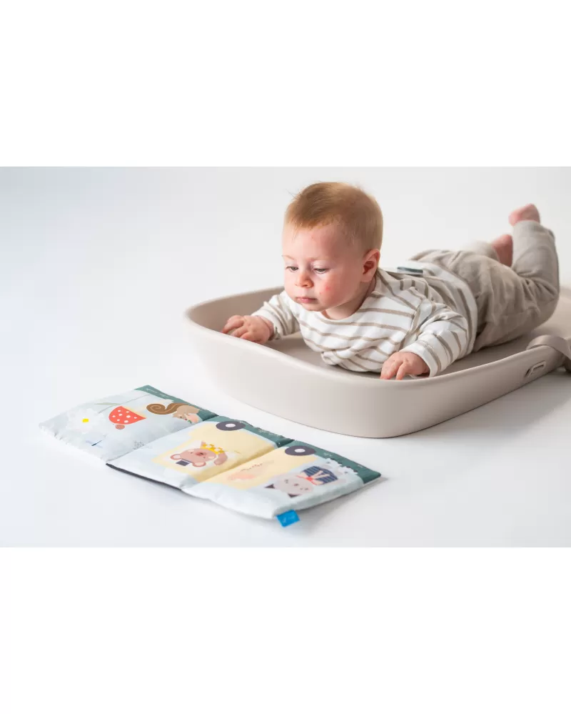 Přebalovací podložka Taf Toys mění každé přebalování v příjemný okamžik pro miminko i pro rodiče. Podložka je vhodná nejen na přebalování, ale také pro hru na bříšku nebo jako hrací podložka na cestách. Součástí balení je textilní knížka pro zabavení miminka během přebalování i pro hru na bříšku.