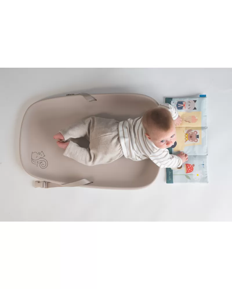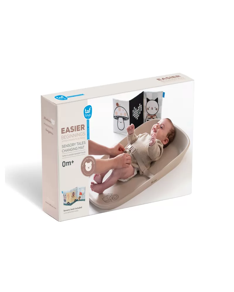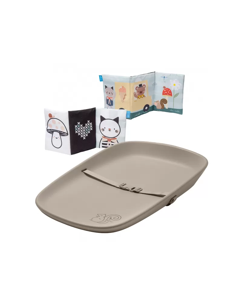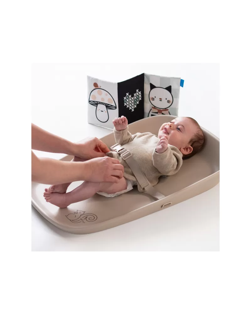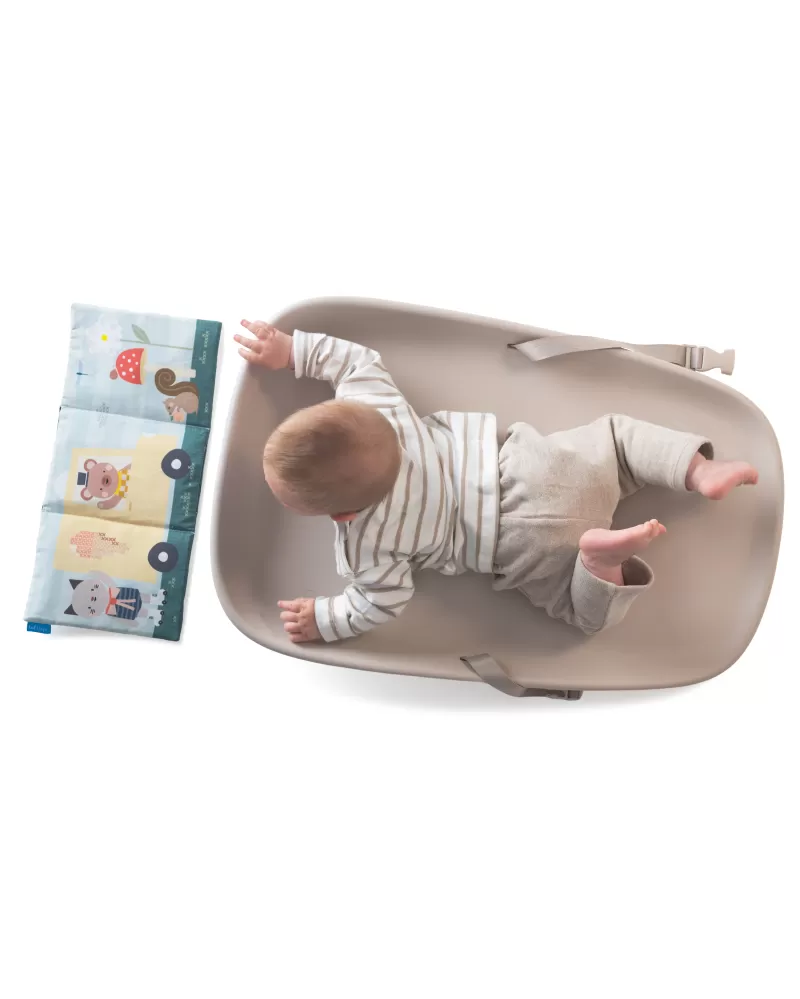 Přebalovací podložka Taf Toys mění každé přebalování v příjemný okamžik pro miminko i pro rodiče. Podložka je vhodná nejen na přebalování, ale také pro hru na bříšku nebo jako hrací podložka na cestách. Součástí balení je textilní knížka pro zabavení miminka během přebalování i pro hru na bříšku.