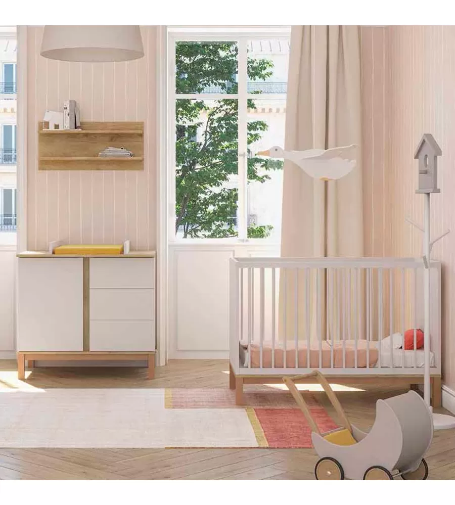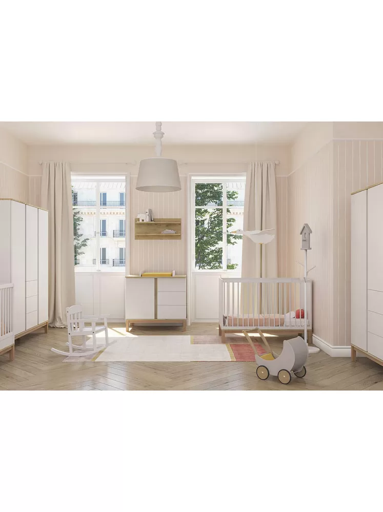 Nezbytný prvek dětského pokoje. Byla navržena tak, aby se vešla do relativně malého prostoru, ale přesto nabídla novopečeným rodičům tu největší možnou pomoc. Její výška, úložné plochy a variabilita byly navrženy na základě zkušeností rodičů. Slouží nejen jako úložný prostor, ale horní část komody lze po dokoupení nástavce na komodu využít jako přebalovací pult.