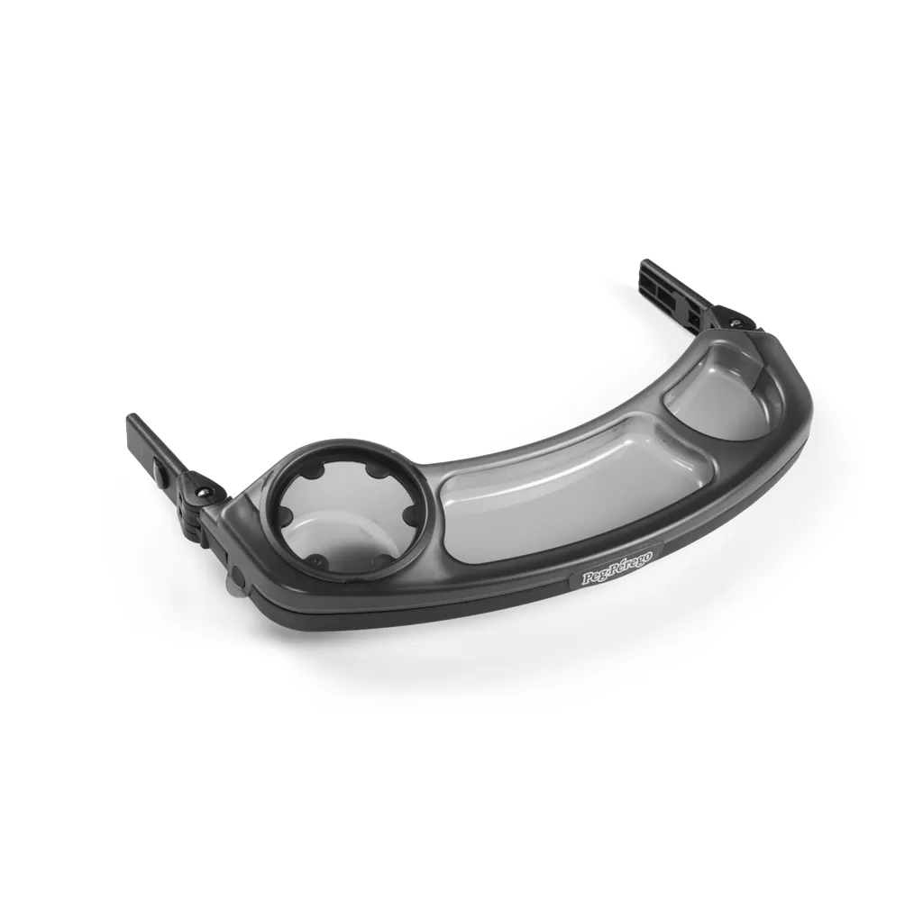 Praktický pult před dítě s přihrádkami a držákem nápojů.