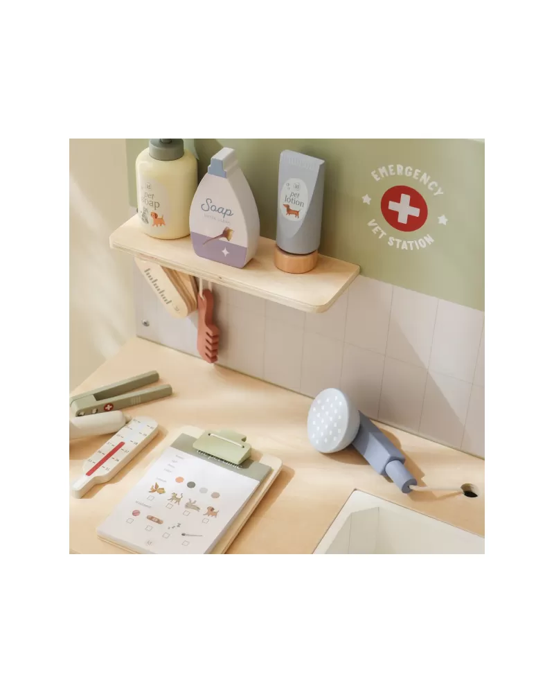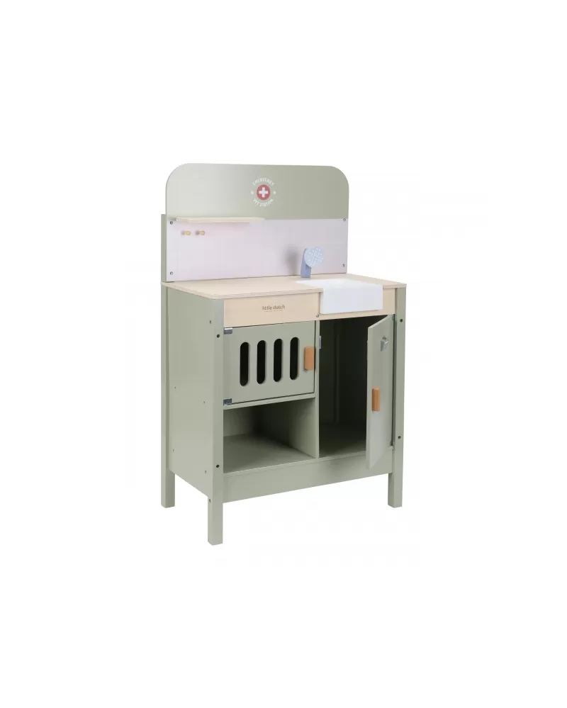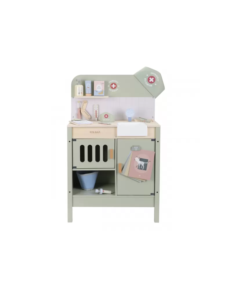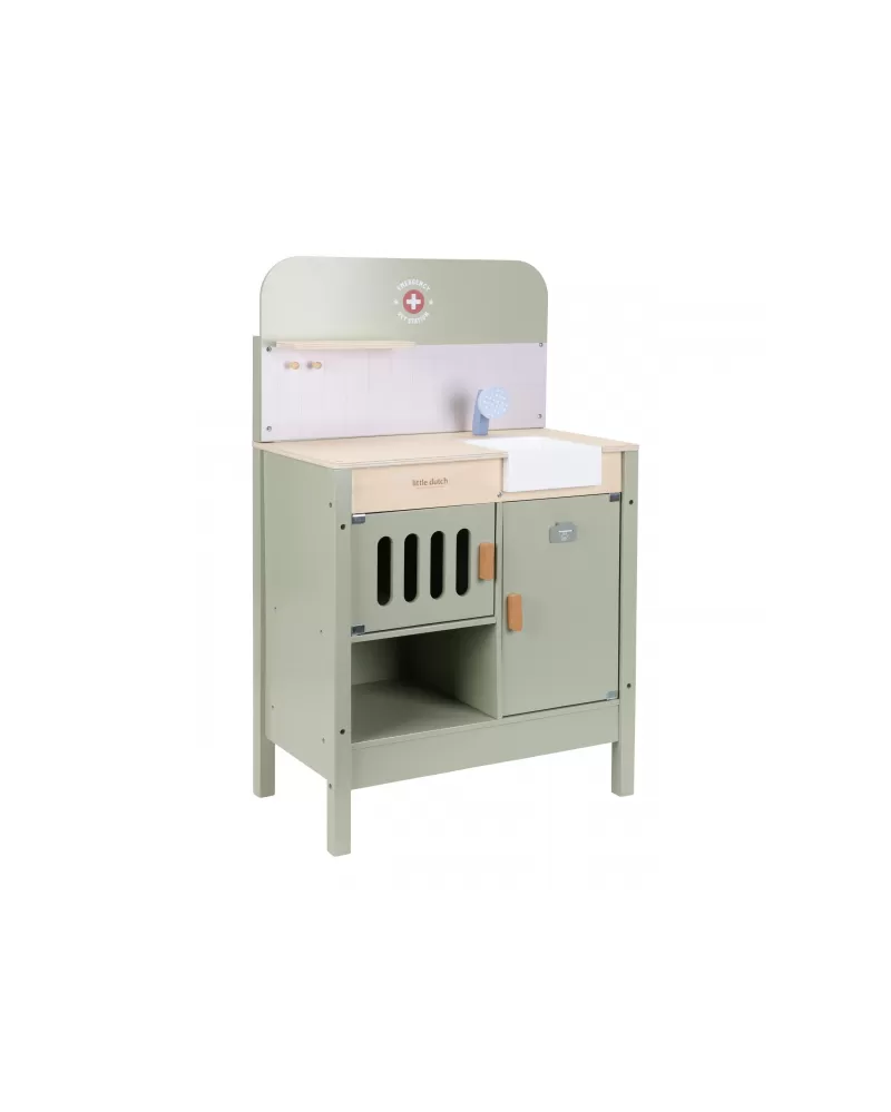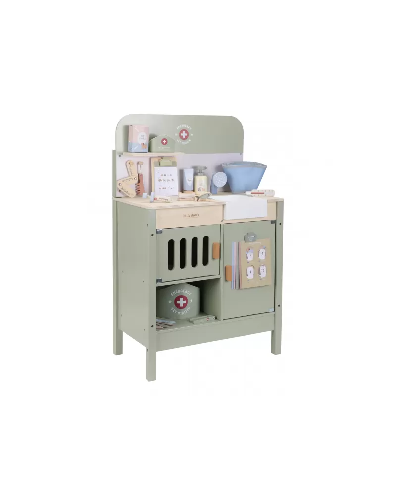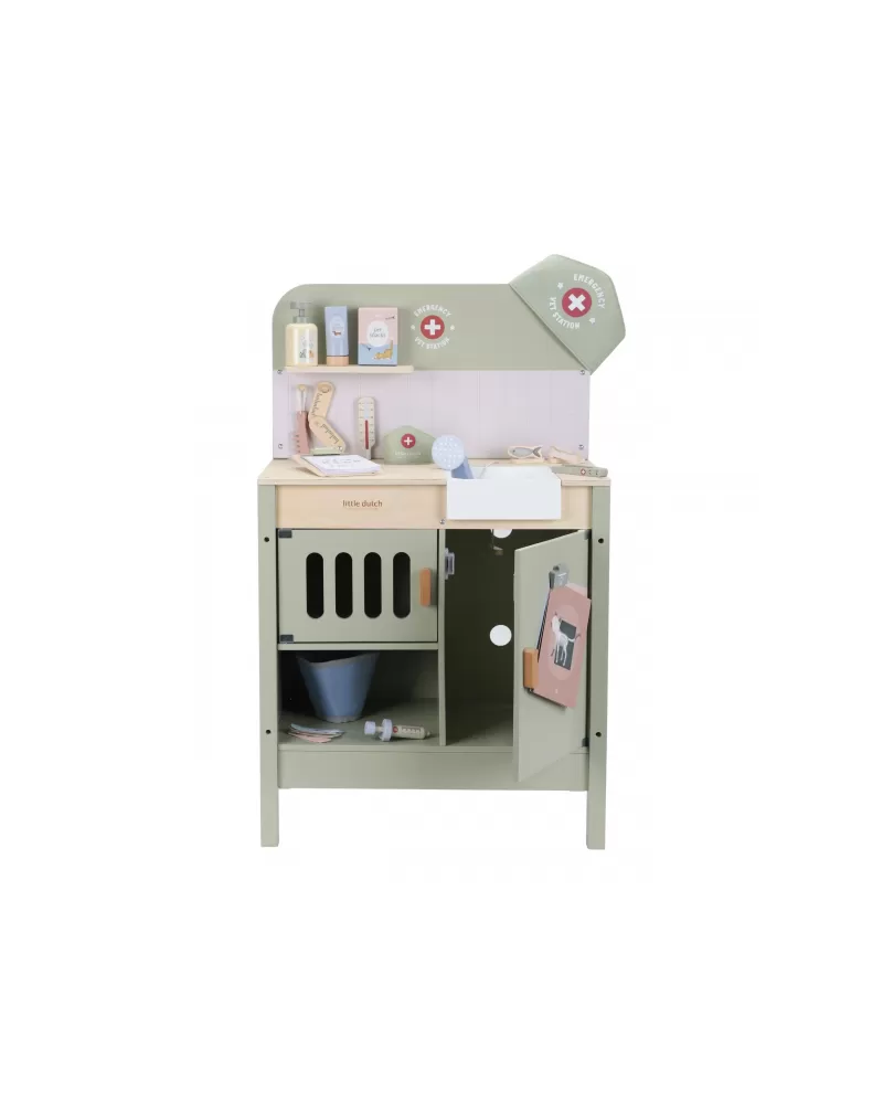 Dřevěná veterinární ordinace Little Dutch je skvělým dárkem pro děti, které milují zvířátka a péči o ně. Díky realistickým doplňkům se malí ošetřovatelé snadno ponoří do světa péče o nemocné mazlíčky. Připravte se na spoustu příběhů ze života plyšových zvířátek a nekonečné hodiny zábavného hraní!