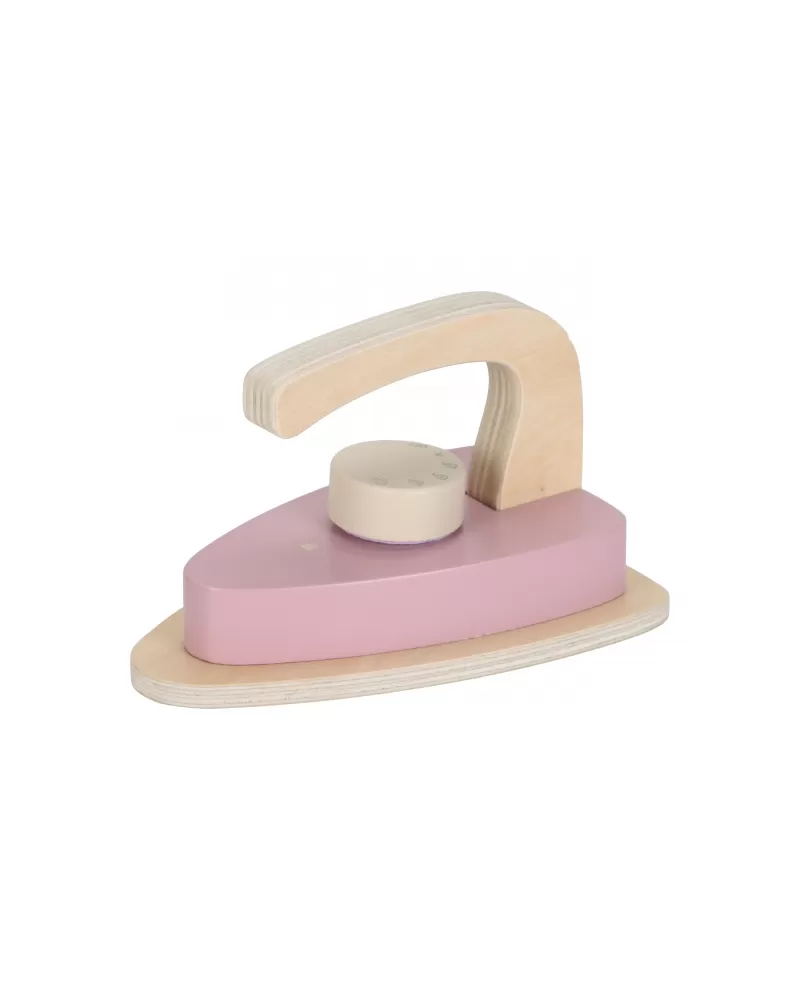 Žehlení oblečení panenkám bude radost s tímto krásným dřevěným žehlicím prknem a žehličkou. Skládací prkno je s textilním potahem s něžným květinovým potiskem vypadá jako opravdové, realisticky působí i běrevně sladěná dřevěná žehlička. Děti mohou hraním s žehličkou napodobovat dospělé a poznávat svět domácnosti zábavnou formou.
